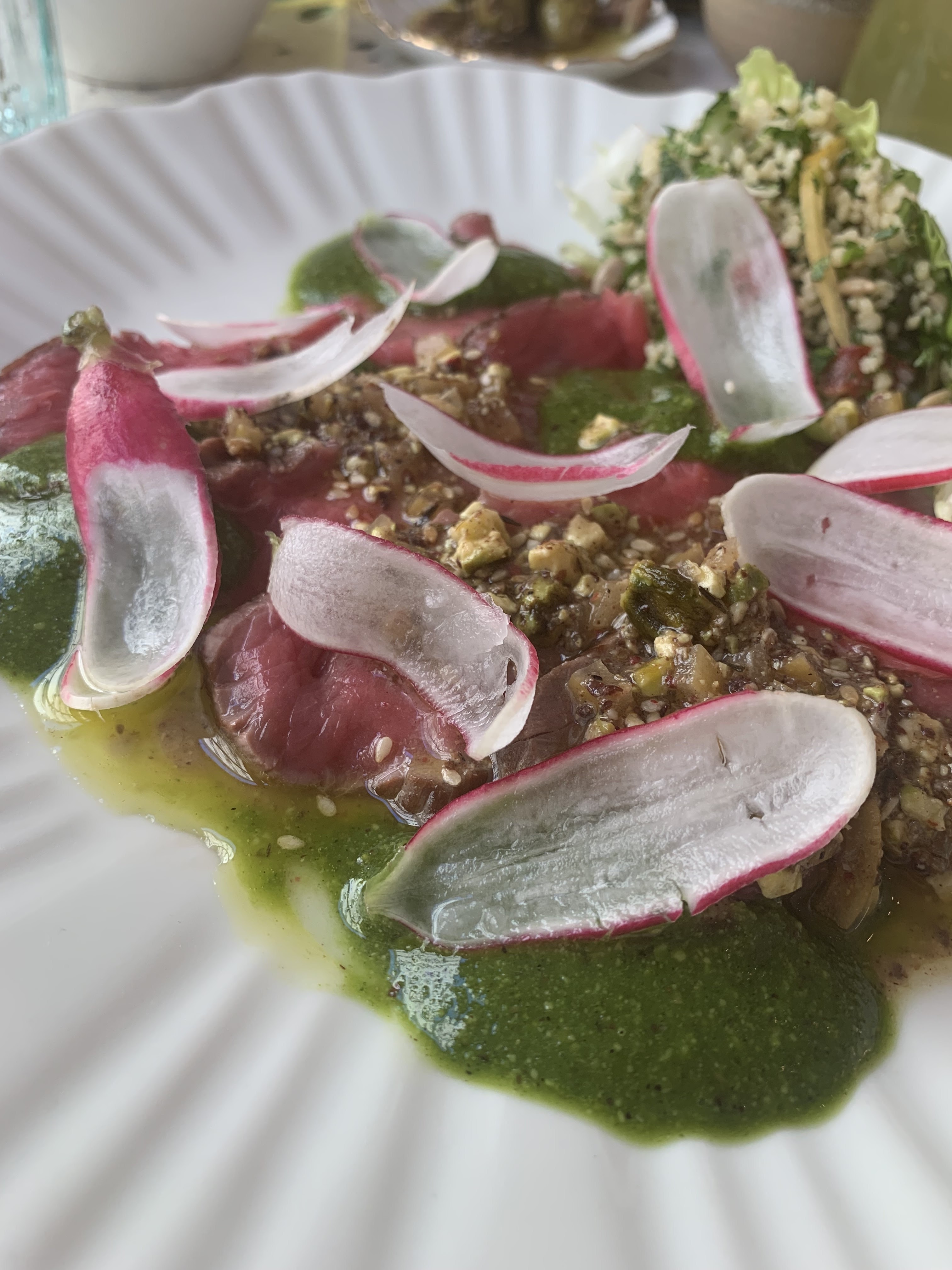 Alors la.. Je suis particulièrement critique pour la bouffe et je m’attendais à un truc bon, mais pas à ce point.. j’ai gouté à tous les cigares salés et ils étaient vraiment incroyables, vraiment rien a dire La salade d’herbes à l’huile d’olive et épices qui allait avec était géniale aussi Le brownie avec sa crème anglaise cardamome super bon aussi Vraiment incroyable je reviendrai à 100%
