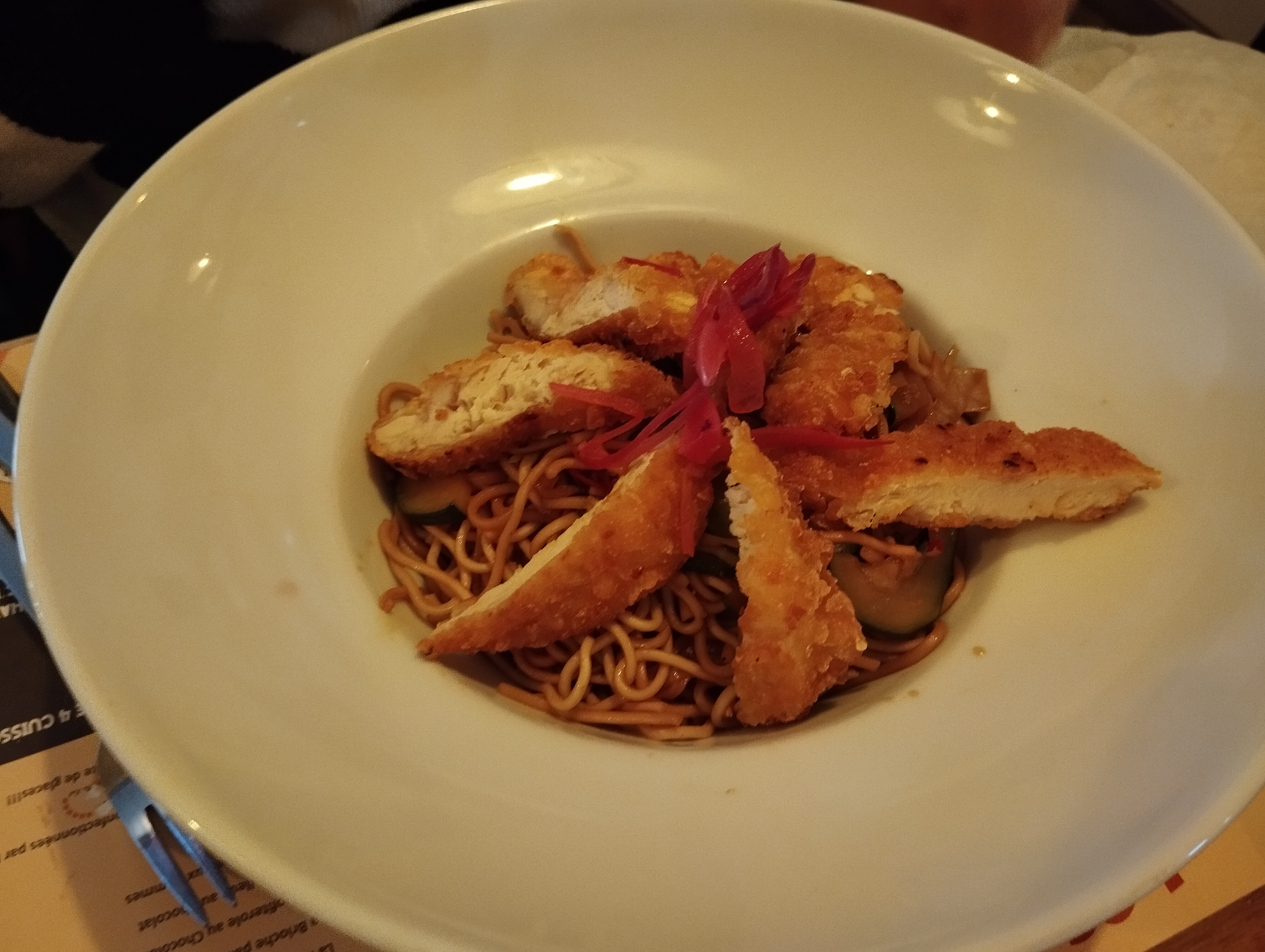 Bonne ambiance, menu intéressant et bons produits, copieux seul bémol salle petite