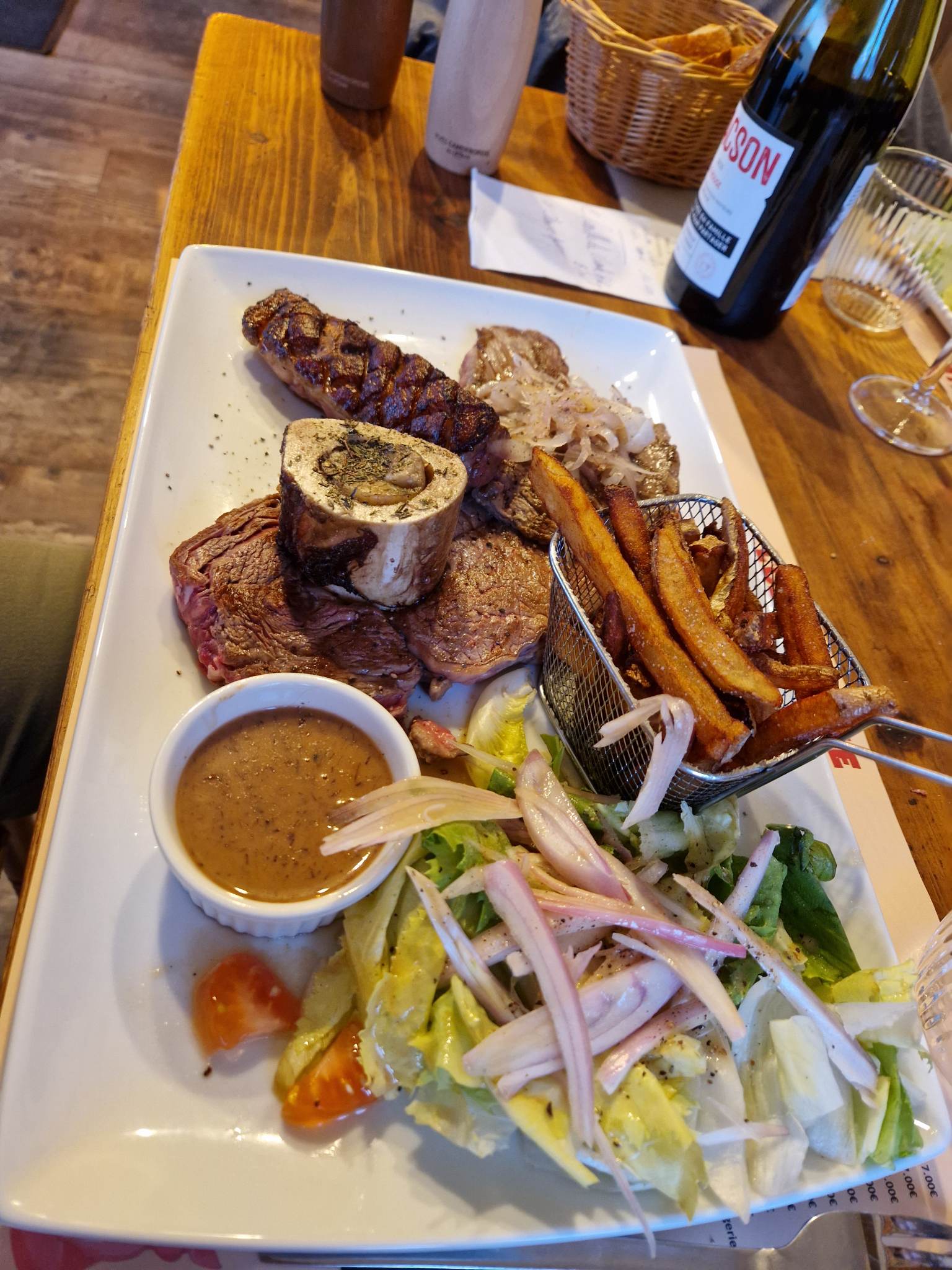 Un repas exceptionnel une cote de bœuf extra un patron a l'écoute et super sympa franchement je recommande..