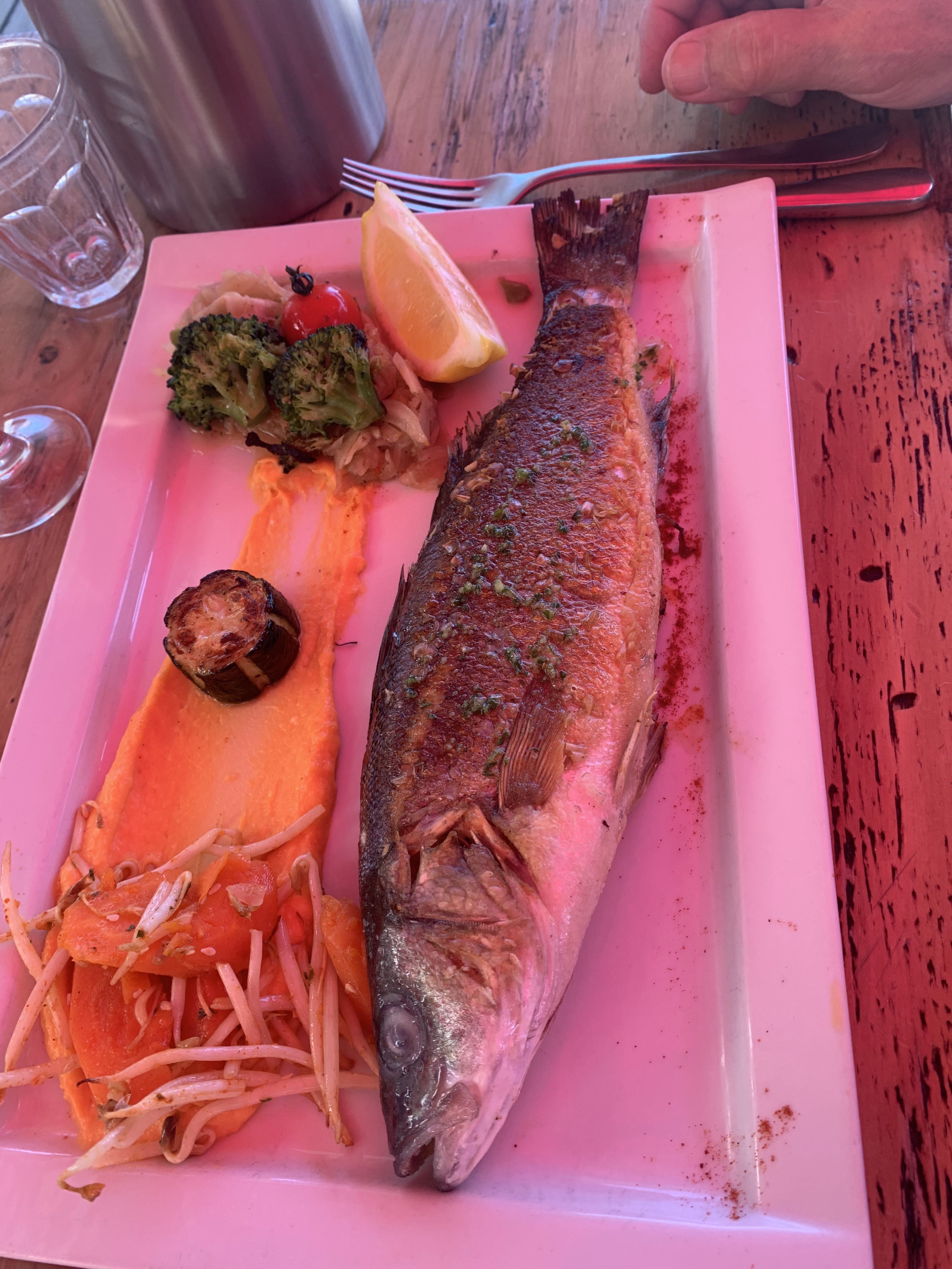 Accueil très sympathique. L oup à la plancha délicieux, Petite remarque les légumes manqué un peu de chaleur. Très vue.