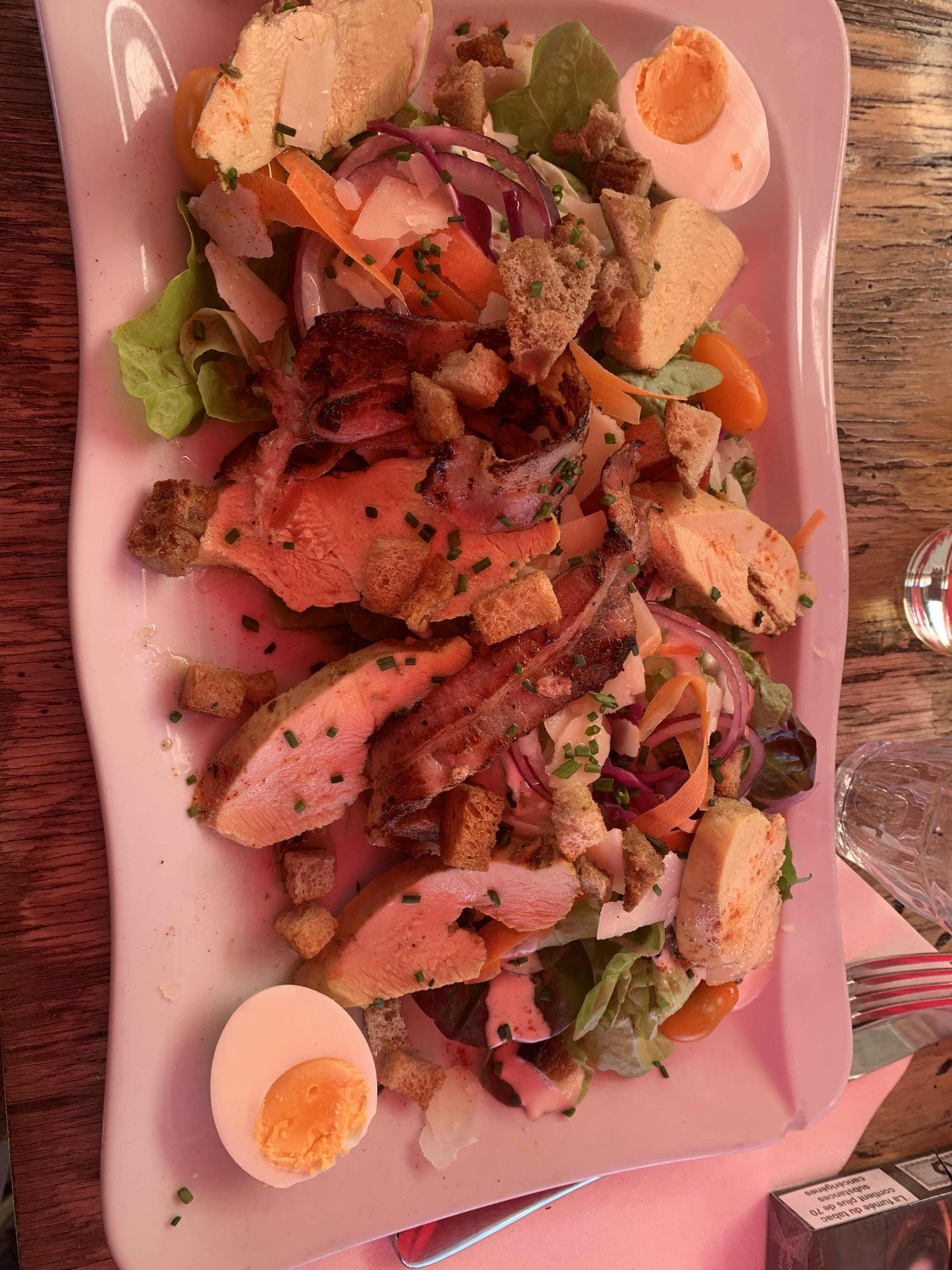 Le cadre est sympa, tout près de l eau C'est pas un gros régal mais c'est correct. Un peu cher je trouve 2 salades 2 cafés gourmands 1 coca : 50 euros Salade repas ordinaire chèvre sur du pain de mie grillé bof coca 3.50 euros Service agréable