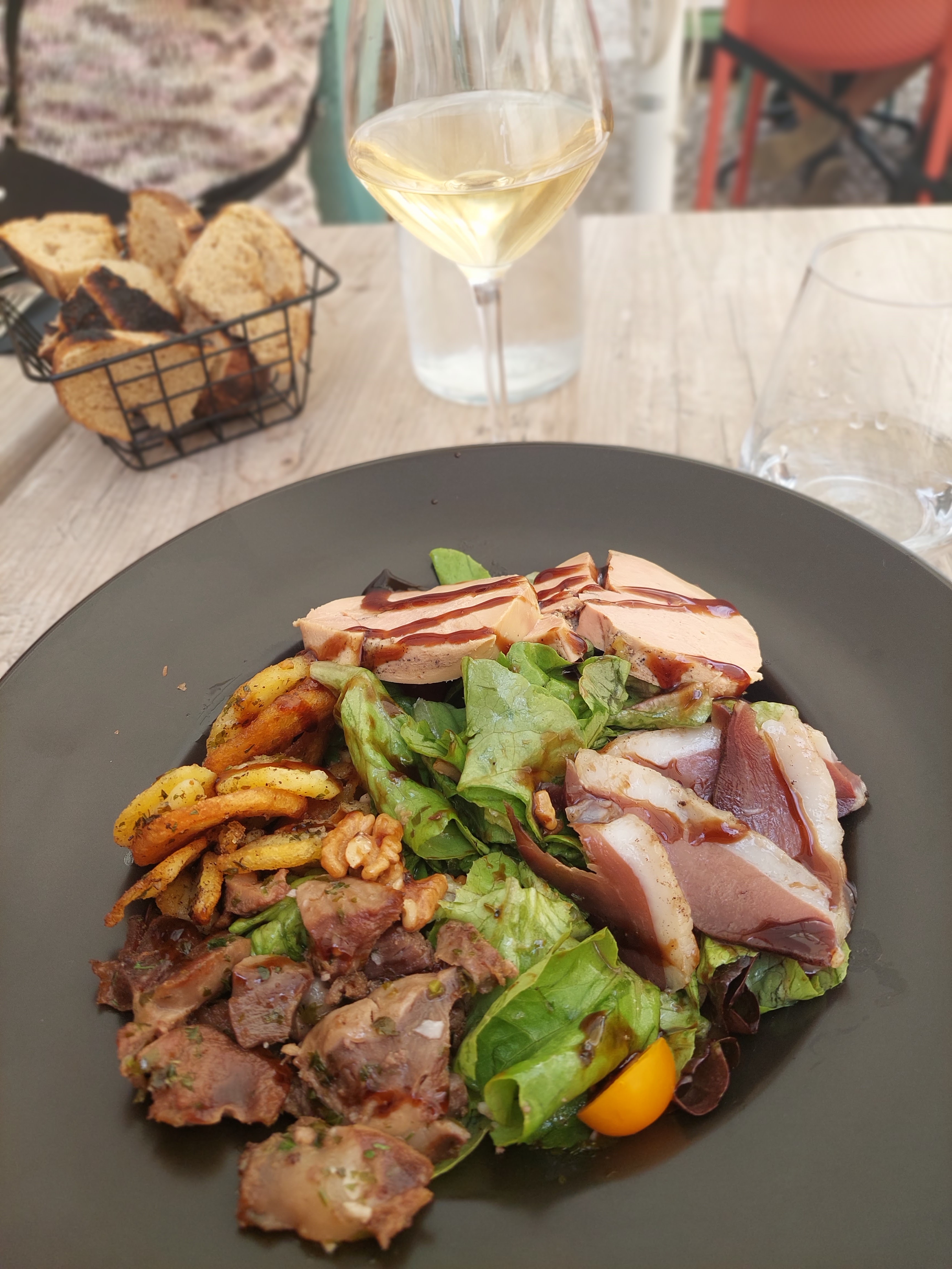 Nous avons très bien mangé à L’Ostal ! Nous avons cependant dû attendre très longtemps avant d’être servis ou que l’on vienne prendre nos commandes.