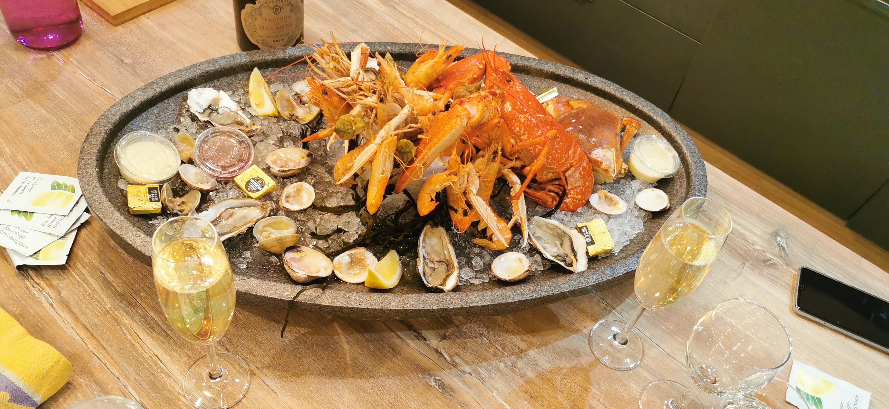 Par hasard et pas déçus, deux plateaux en formule a 49 euro avec un verre de vin et un Demi homard breton. Top de fraîcheur !!!. Accueil très pro . On peut regretter l environnement,mais la qualité le fait oublier.bravo