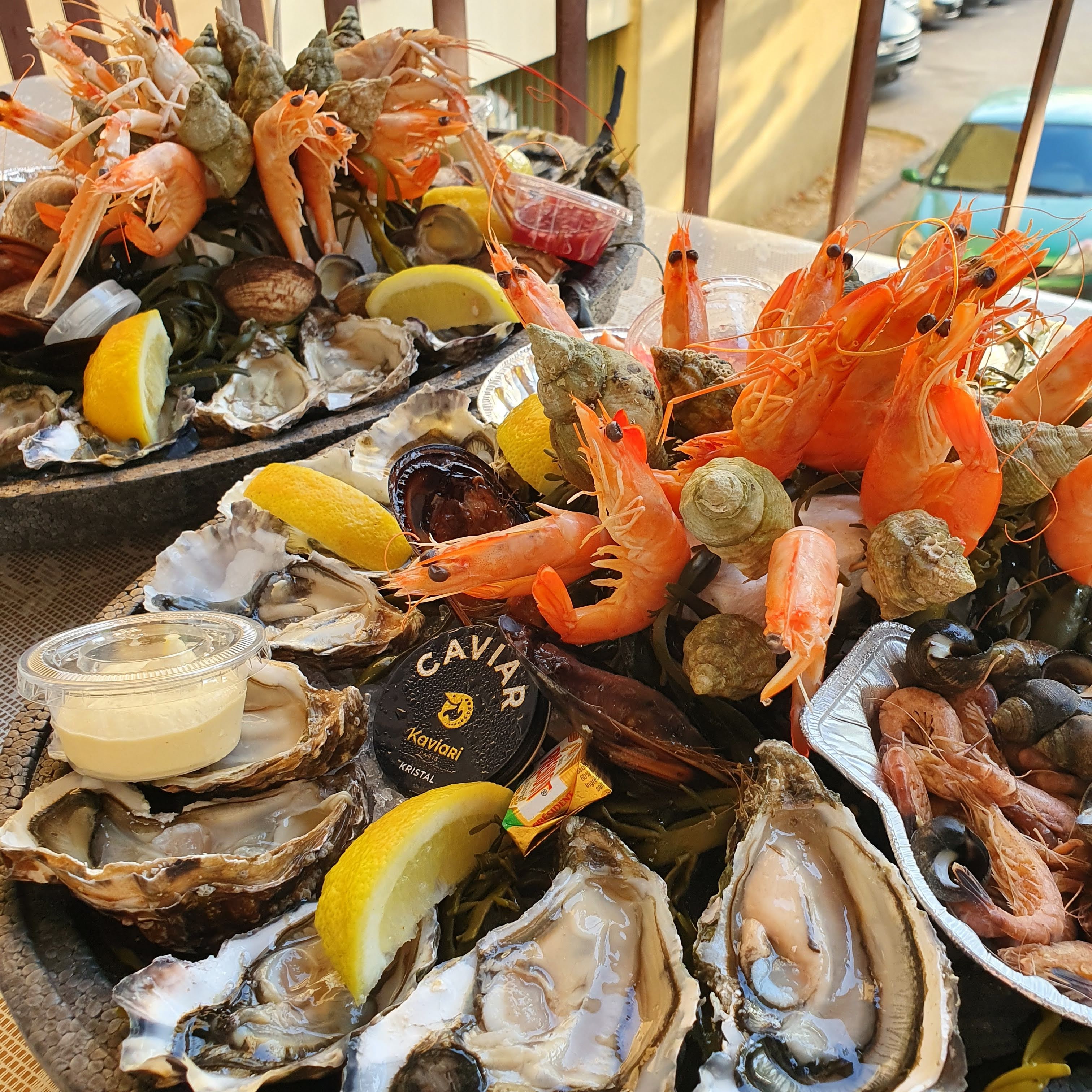 De magnifiques plateaux de fruits de mer à emporter à différents tarifs sinon restaurants sur place