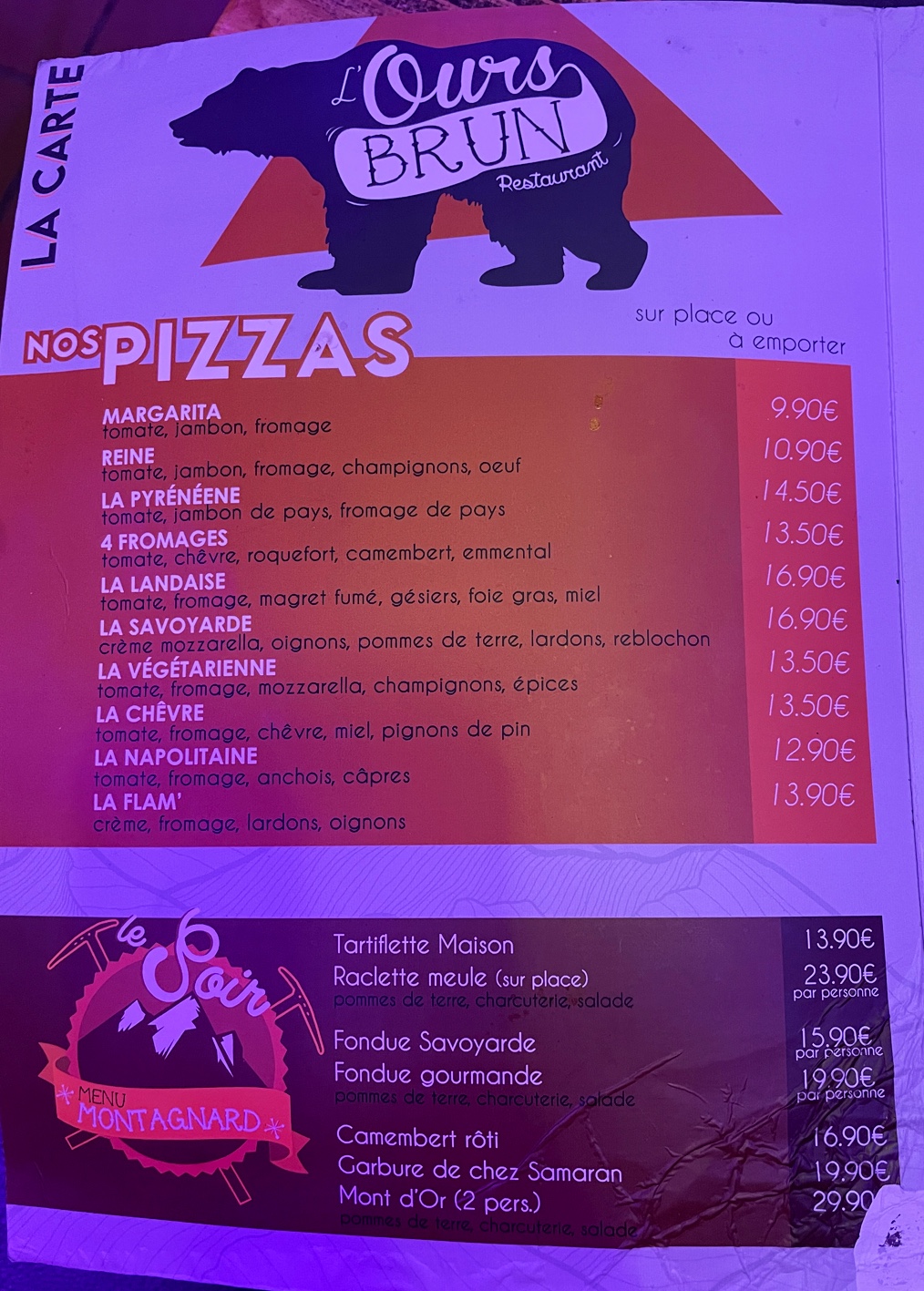 Après notre week-end à piau nous avons manger à l’ours brun, L’accueil au top, le patron ainsi que les serveurs sont gentil et serviable, la raclette est à tomber par terre, le service super rapide, je recommande les yeux fermé ce restaurant !!!