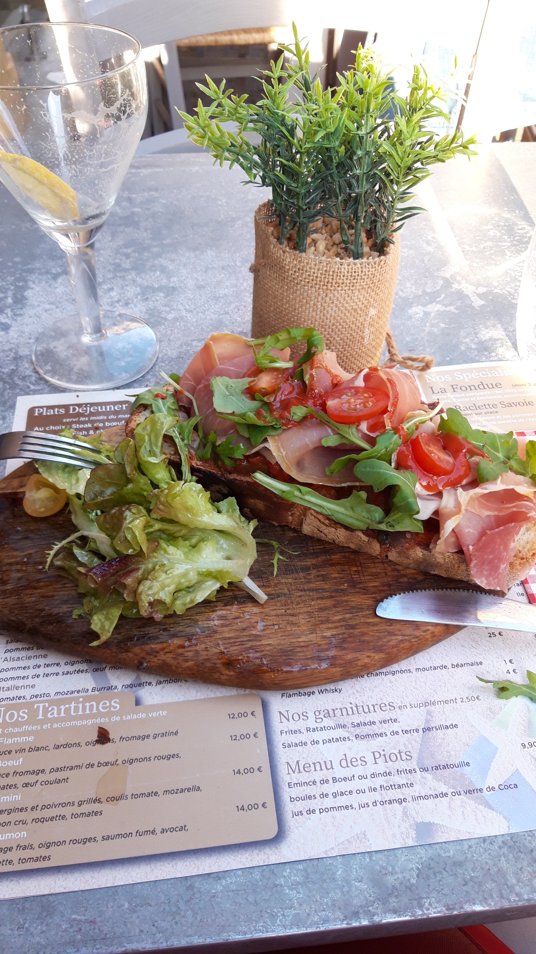 Très très déçu, première et dernière fois. Personnel plus que restreint.... dans l'ordre: Service très long. J'ai réclamé l'assiette à partager à la fin de l'apéritif. J'ai commandé un repas mais j'ai pas eu le bon. Un saumon initialement avec une sauce mais elle est arrivée dans un ramequin 10 minutes après l'avoir réclamée.. et froide. Nous avons pris l'initiative de débarrasser la table car personne ne venait... mon fils est parti commander un café et je suis allé demander les glaces du menu enfants... Le bouquet final, personne n'est venu nous demander si nous voulions un dessert ou un café. Et sur l'addition, une erreur de 20€ car 2 menus enfants supplémentaires. Heureusement, on a vérifié avant de régler. En bref, gros flop.