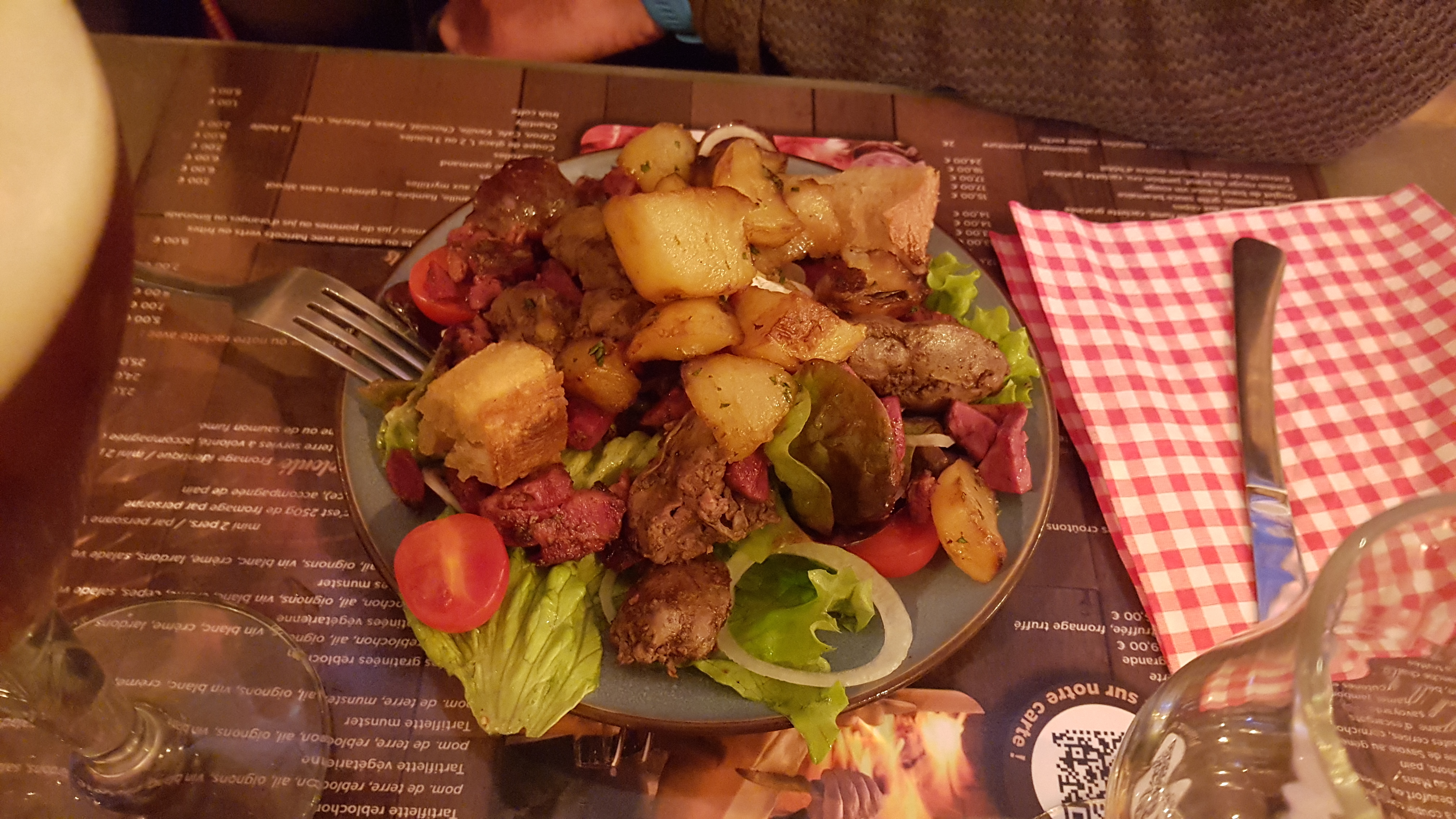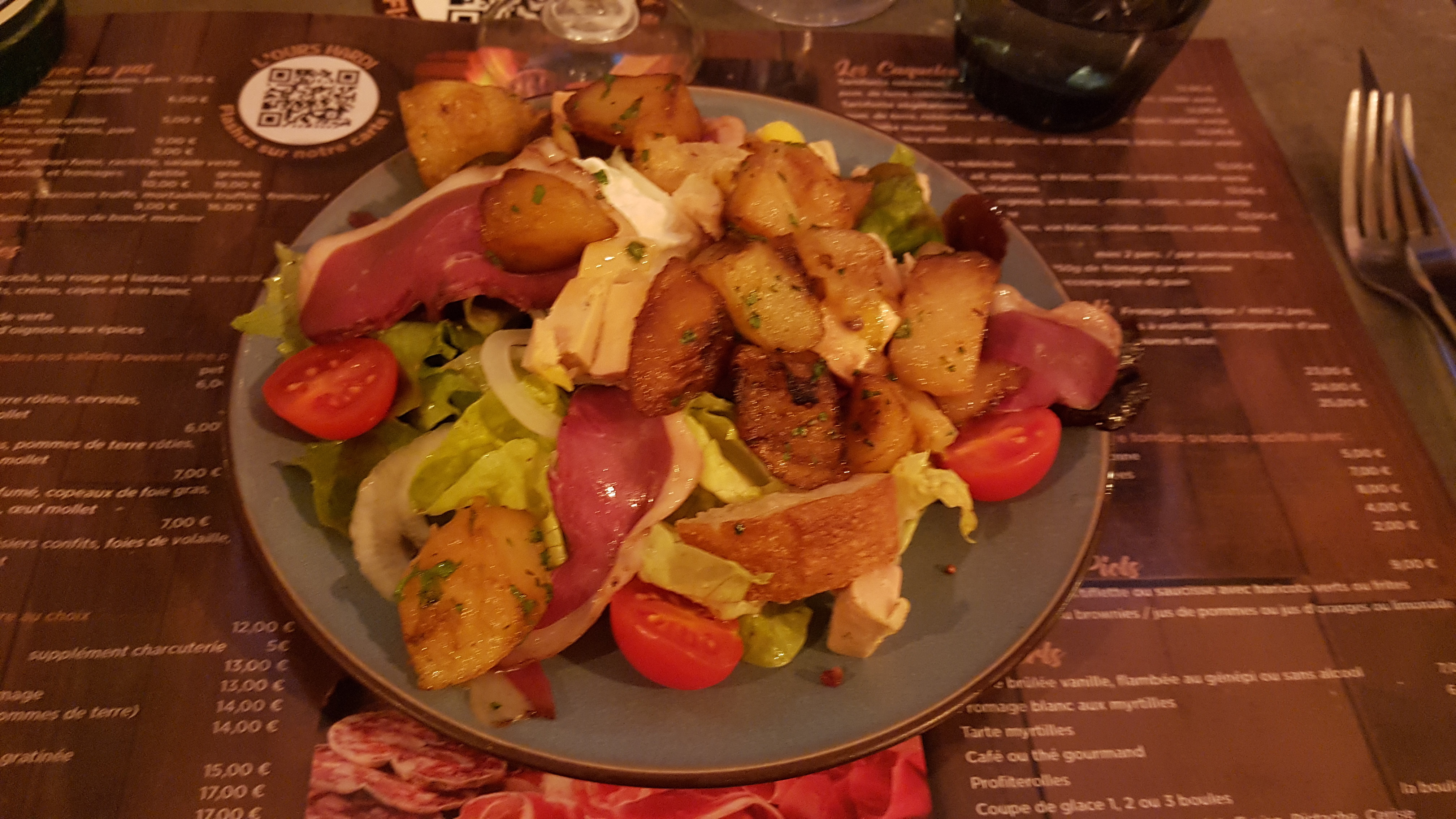 La raclette bien la tartiflette moyen le pain mauvais la charcuterie moyen et je ne recommande pas la mousse au chocolat et on s est fait reconduire a' la porte car il y a 2 services. sans plus !!!