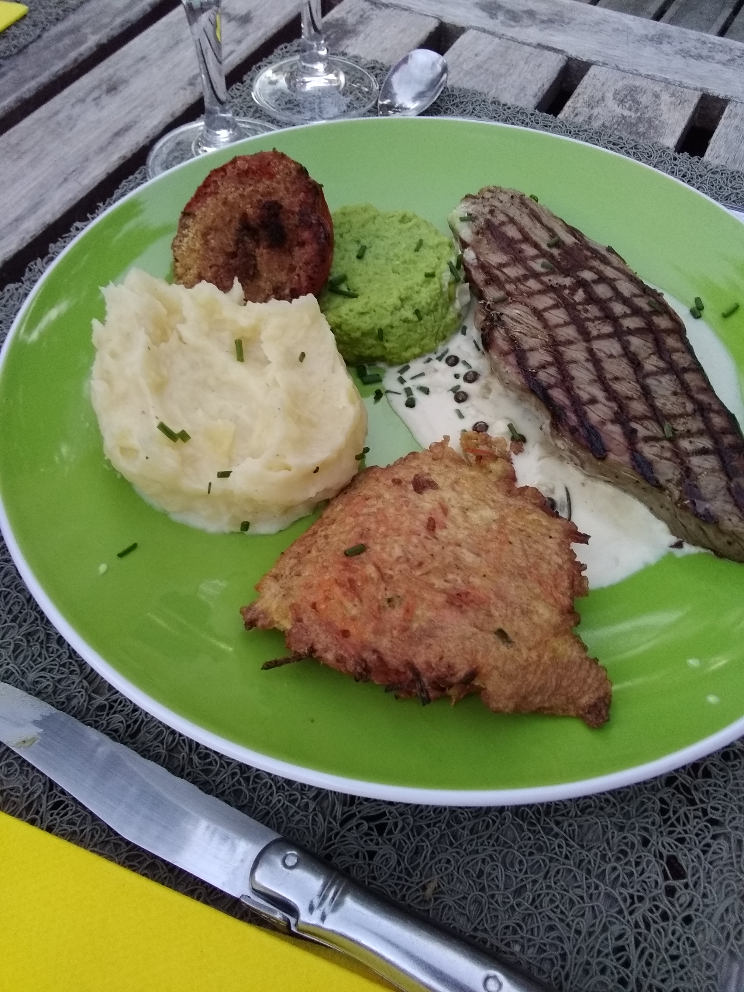 Repas copieux et délicieux, à base de produits frais et locaux. Très bon rapport qualité prix. Le steak était à tomber ! Le service impeccable et le personnel souriant et aimable. Nous avons ensuite joué une partie de putting golf. Très sympa de jouer sur l'herbe. Bien entretenu et les conseils avisés au départ pour les débutants étaient de bon augure! Merci !