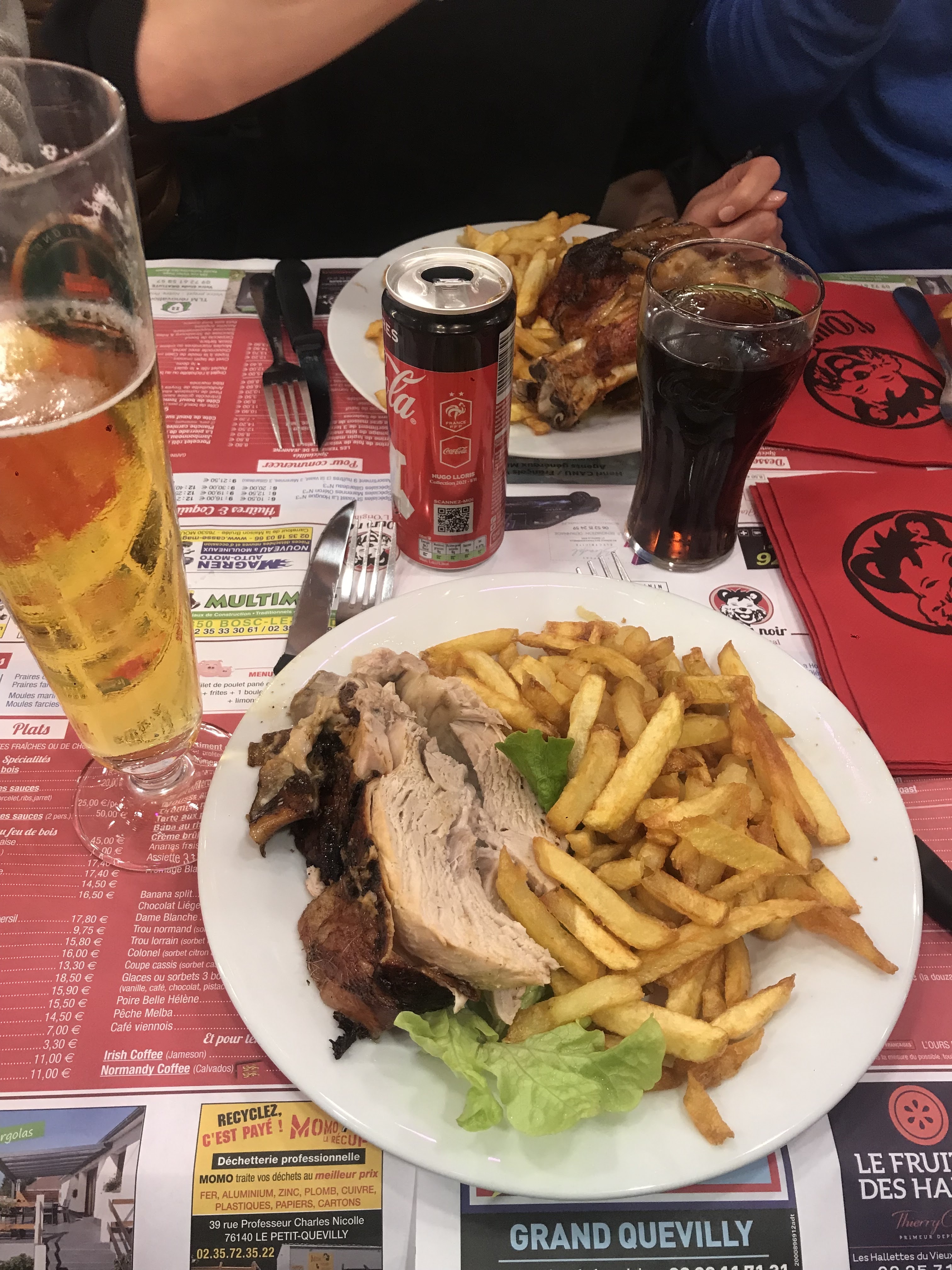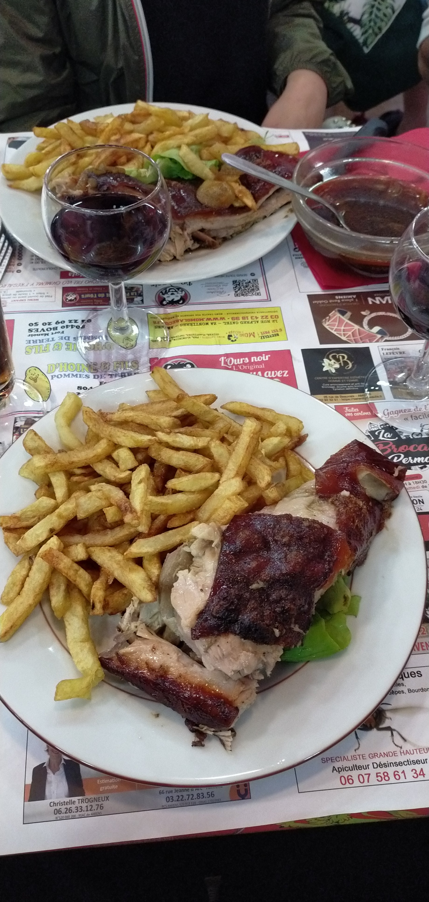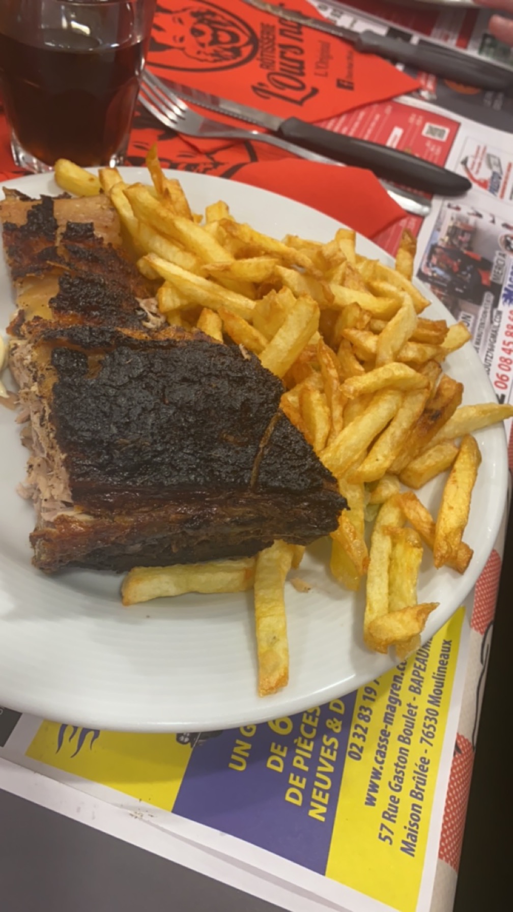 moment bonheur avec mon fils de 8 ans ! quel délice ce porcelet avec de délicieuses frites fraiches maison. ambiance festive