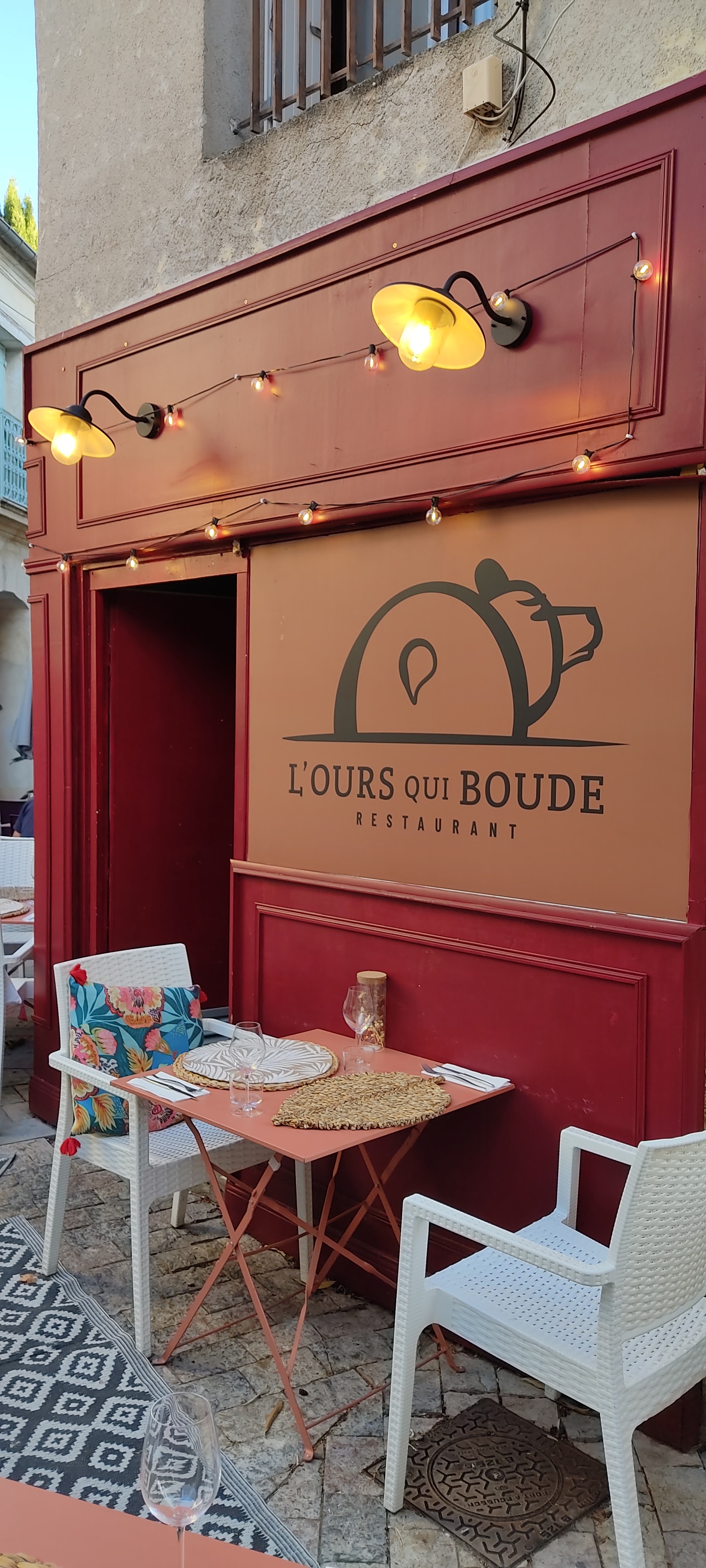 En plein coeur de Castelnau-Le-Lez un ours vous attend. Niché dans une petite ruelle il va vous accompagner dans un cadre extérieur accueillant, champêtre, coloré, la campagne en plein centre ville. Puis dès que les premiers frimas vont pointer le bout de leur nez vous serez accueillis dans une salle dont l'ambiance tamisée va venir vous envelopper. La déco est jolie, le mobilier tout autant, les matières nobles sont mises à l'honneur. Le plafond végétalisé et lumineux apporte à l'ensemble une touche féerique. La cuisine traditionnelle revisitée et modernisée par la cheffe saura ravir aussi bien vos papilles que vos mirettes. Des associations judicieuses, inventives dans le respect des produits et de la saisonnalité. Vous allez vous régaler. Je ne peux que vous inviter à aller découvrir l'Ours qui boude. Boudeur il est peut-être mais je vous assure qu'il est très accueillant et les prix à la carte ou le menu sont tout à fait corrects. Vous n'aurez qu'une envie, y retourner ....