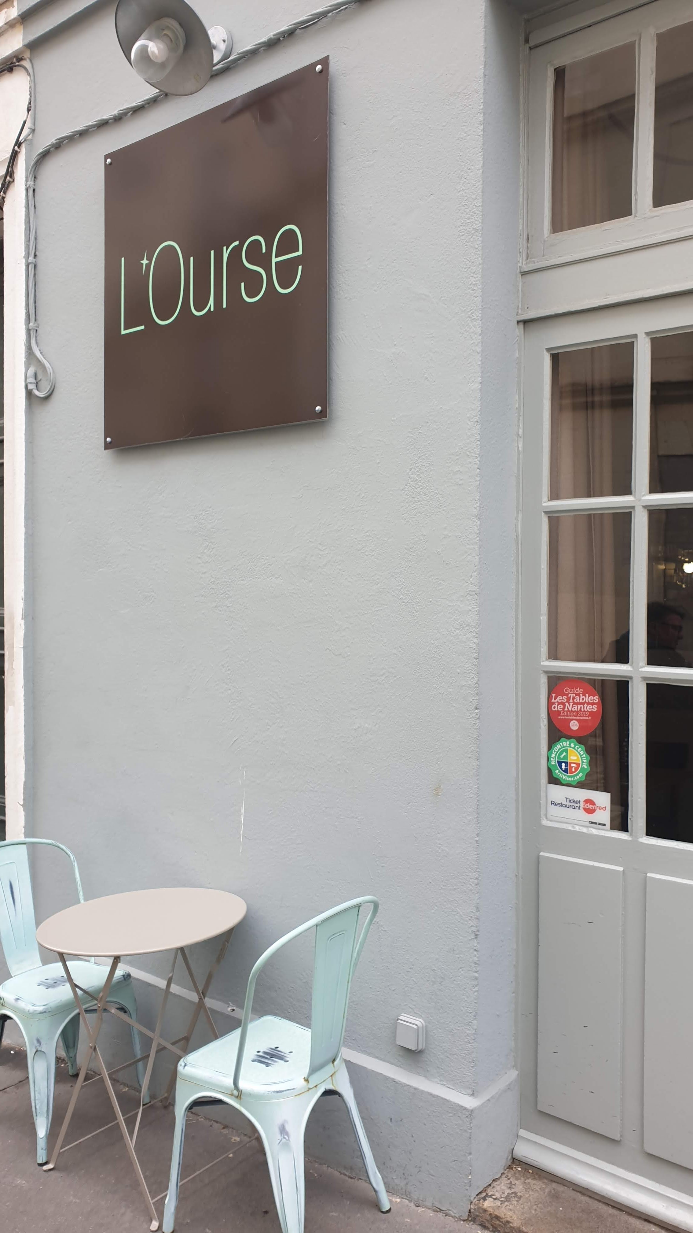 Sur les conseils d'un pote, je m'arrête au restaurant l'OURSE. Petit resto agréable proche du muséum d'histoire naturelle de Nantes. Accueil et service impeccable. Menu à l'ardoise : 2 entrées - 2 plats - 2 desserts C'est clair et fait maison. Le déjeuner est excellent du début à la fin. Il faut encourager ce style d'établissement très bon pour un prix très correct. 19€ pour moi. Un conseil, il vaut mieux réserver. Bravo, j'ai trouvé mon coin pour me régaler.