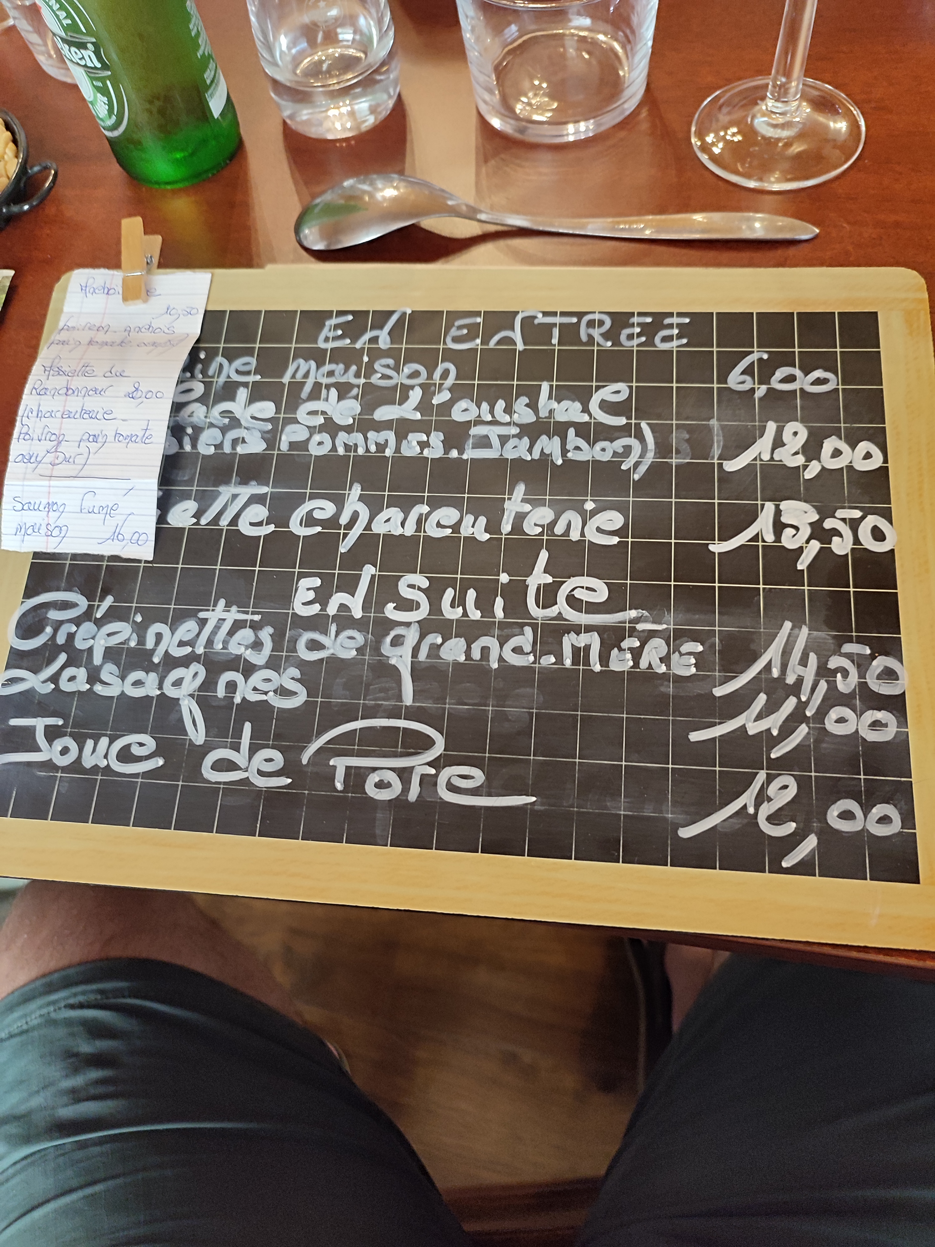 Des plats cuisinés maison comme on n'en trouve que rarement ! Un goût, plein de goûts... et n'oubliez pas le verre de vin pour accompagner 🍷🍷 Pour nous ce midi: terrine et charcuterie - crépinettes et gratin - glace touron et flan 😋