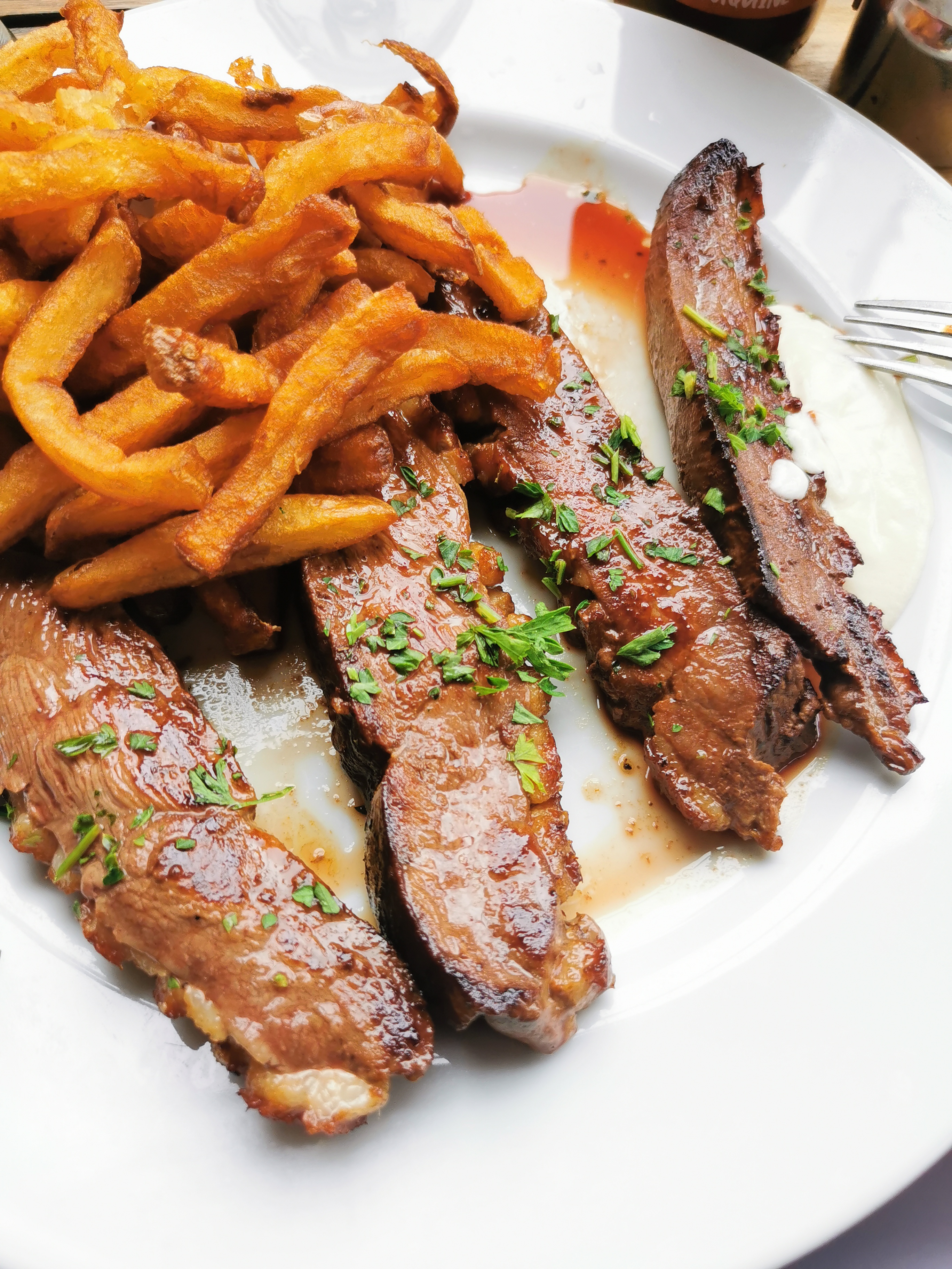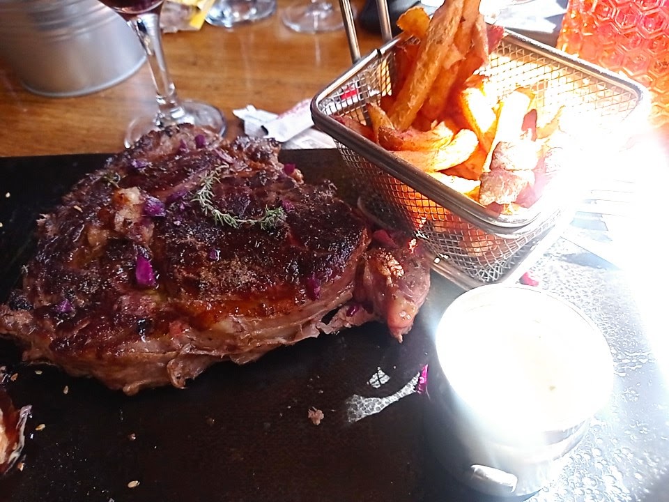Enfin une vrai entre ôté de boeuf dans l'assiette et des frites maison un régal