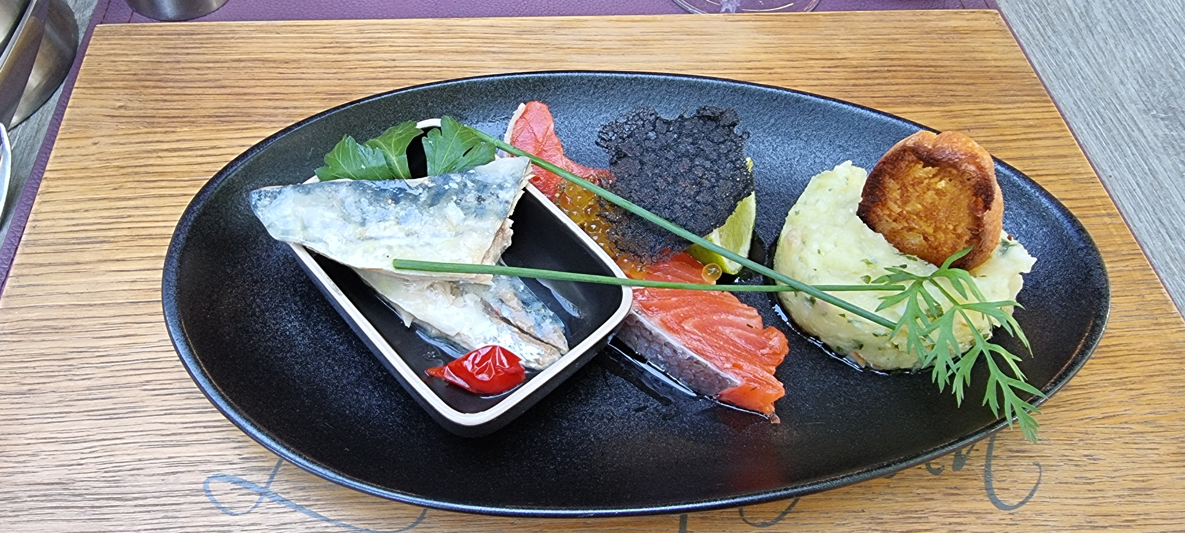 Accueil sympathique, planche du pêcheur excellente une déclinaison de poissons goûteuse ! Le dessert tiramisu au Calisson je recommande !