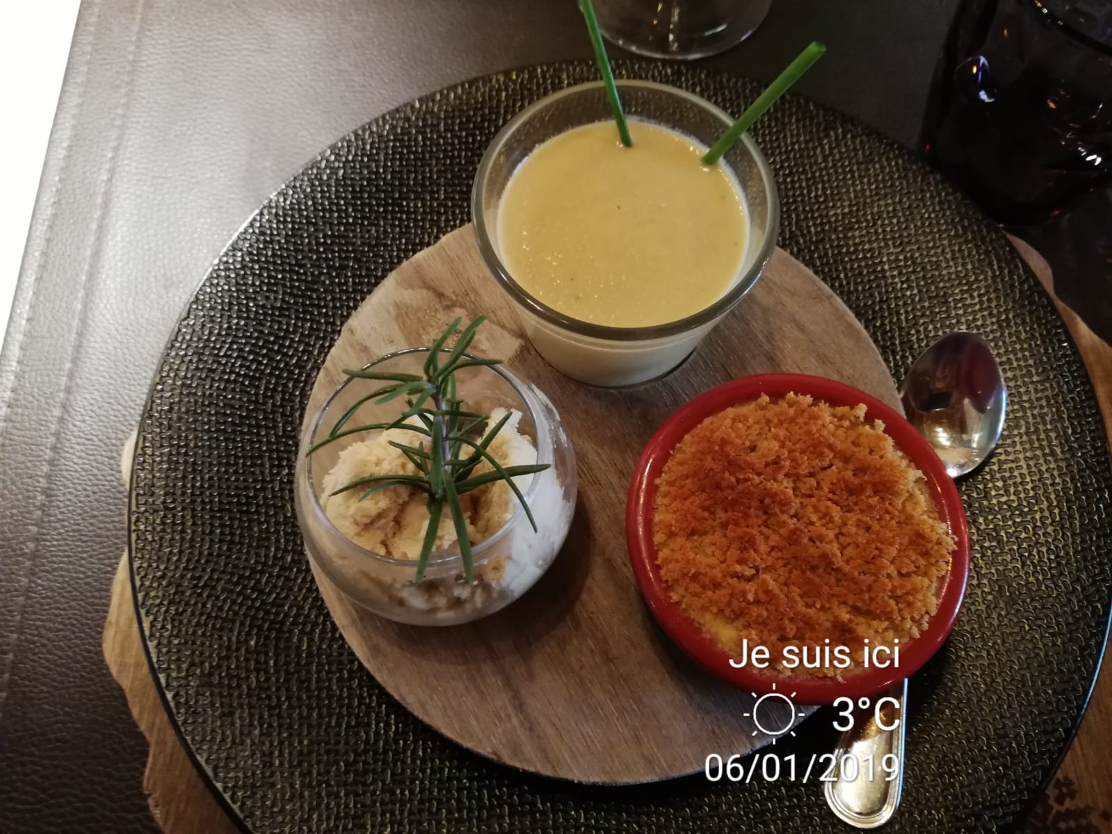 Aussi bon que beau .on s est régalé..pas pu tester les desserts qui me fesai très envie car j avais trop mangé oups !! Je recommande . Je testerai en hivers car le cadre et la décoration sont magnifique 👍