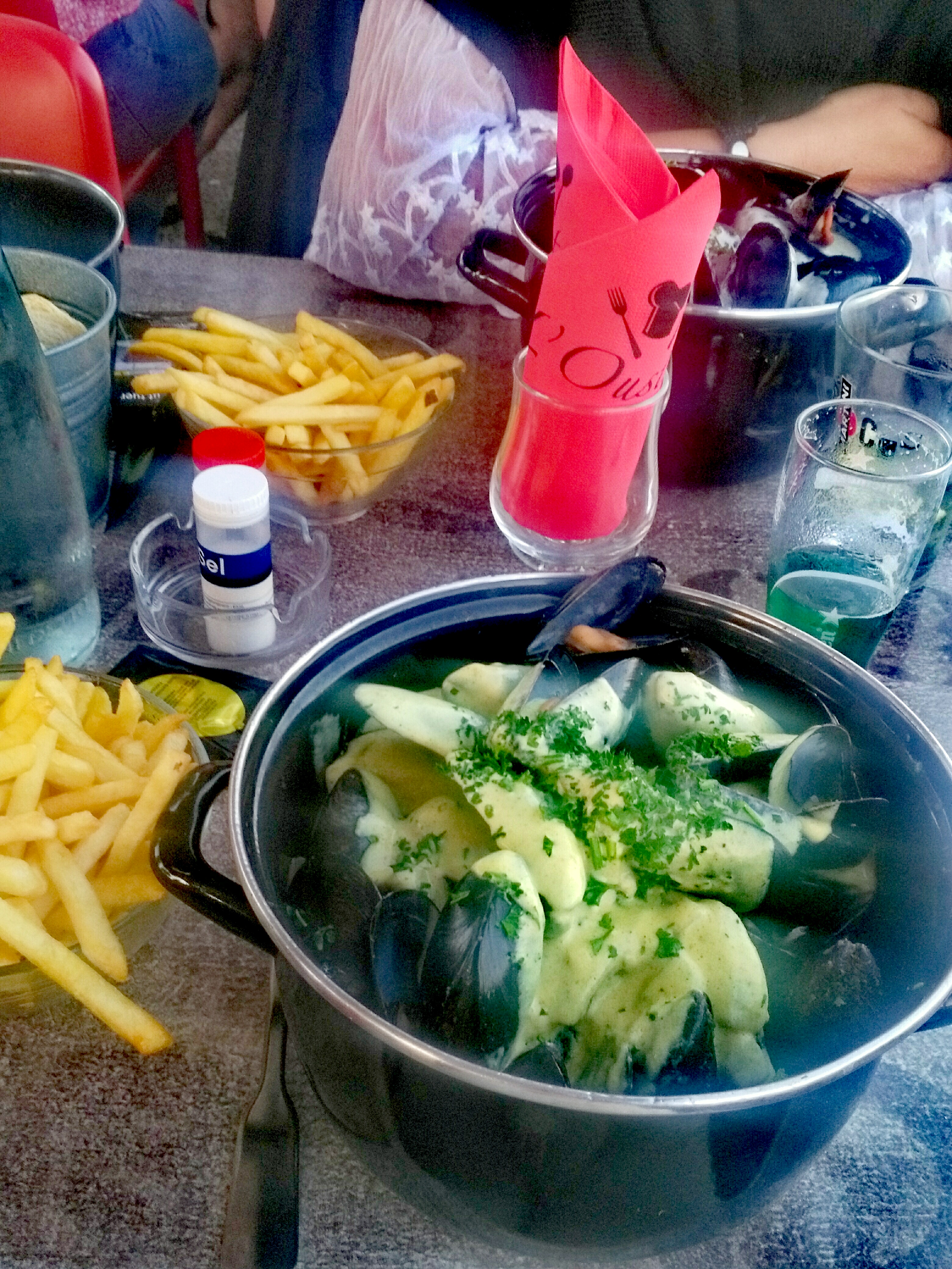 Moules au roquefort avec frites : bon gout de roquefort, creme un peu trop épaisse et mal repartie (absence moules du fond) pouvant être parfois un peu écoeurant aux endroits ou elle s'accumule. Moules un peu trop cuites. Frites allumettes bonnes
