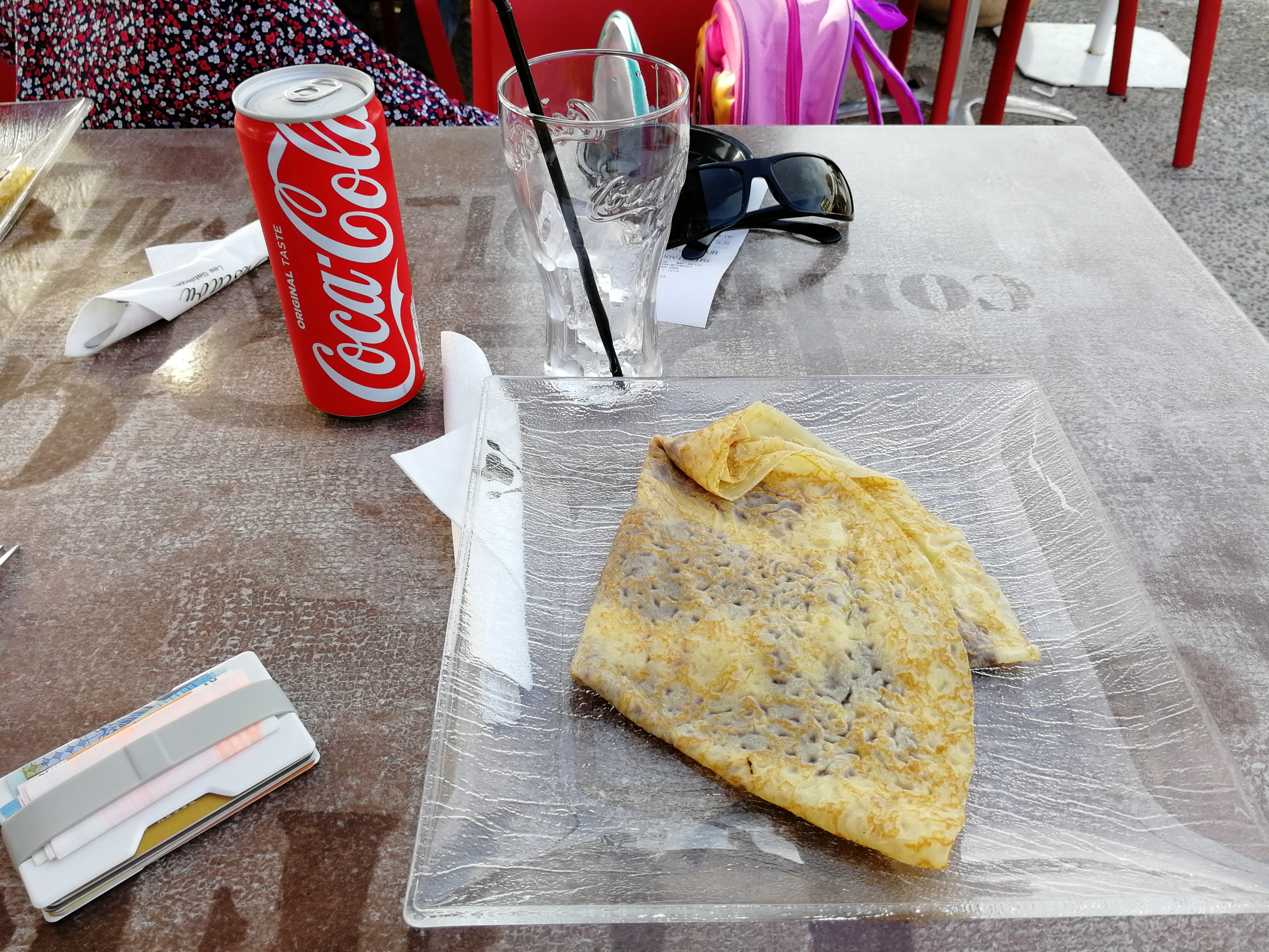 Service HYPER sympa ; formule à 5€ avec crêpe ou pâtisserie du jour et boisson fraîche ou chaude ; bord de mer ; je reviendrai !