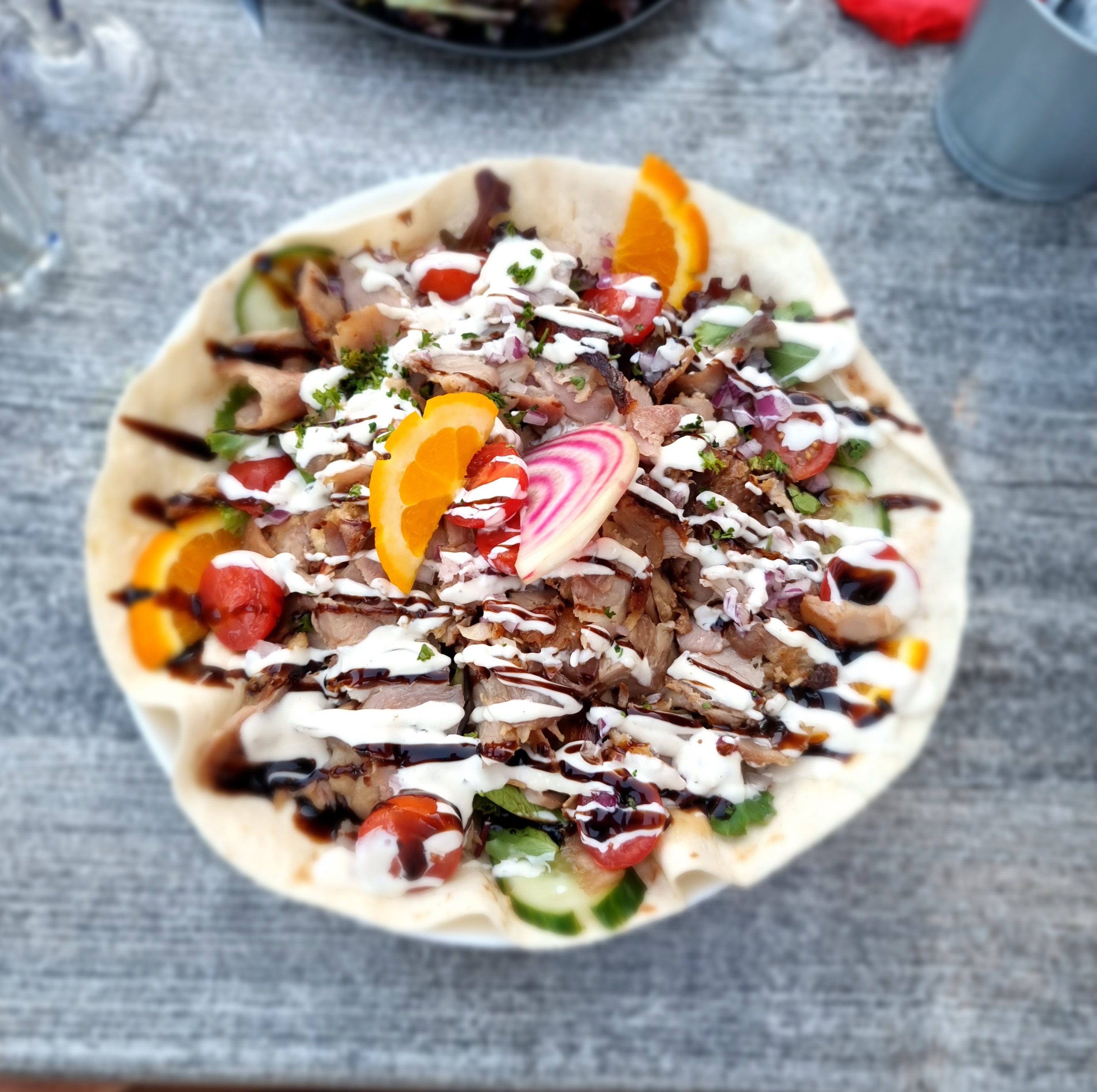 La salade de ma compagne était très bonne selon ses dires et très copieuse. Pour ma part, la pizza dans le menu du jour est assez quelconque. Le chorizo à l'air d'être du très bas de gamme et le chèvre n'est pas sensationnel. Service correct. Cadre très sympa, nous avons mangé le plus près possible de la plage