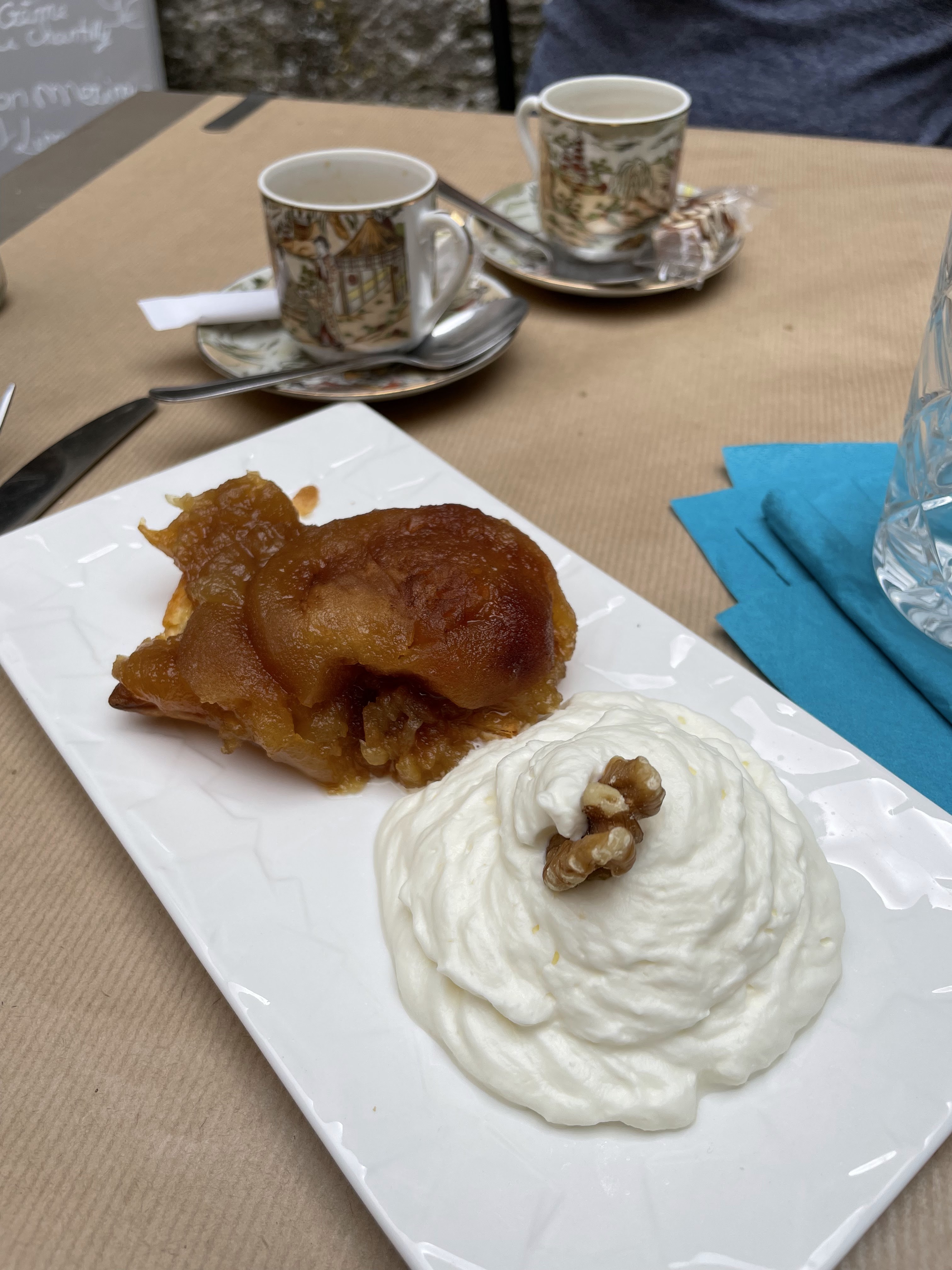 Ce restaurant a la meilleure note des restaurants du coin, mais il est assez cher et la nourriture n'en vaut pas vraiment la peine. Pour moi, c'était un peu assaisonné. Mais l'emplacement est génial, une petite cour où règnent calme et ombre. Monsieur très agréable. Malheureusement, l'eau est assez chaude, comparée à d'autres restaurants que j'ai visités en France, où l'on servait toujours de l'eau froide.