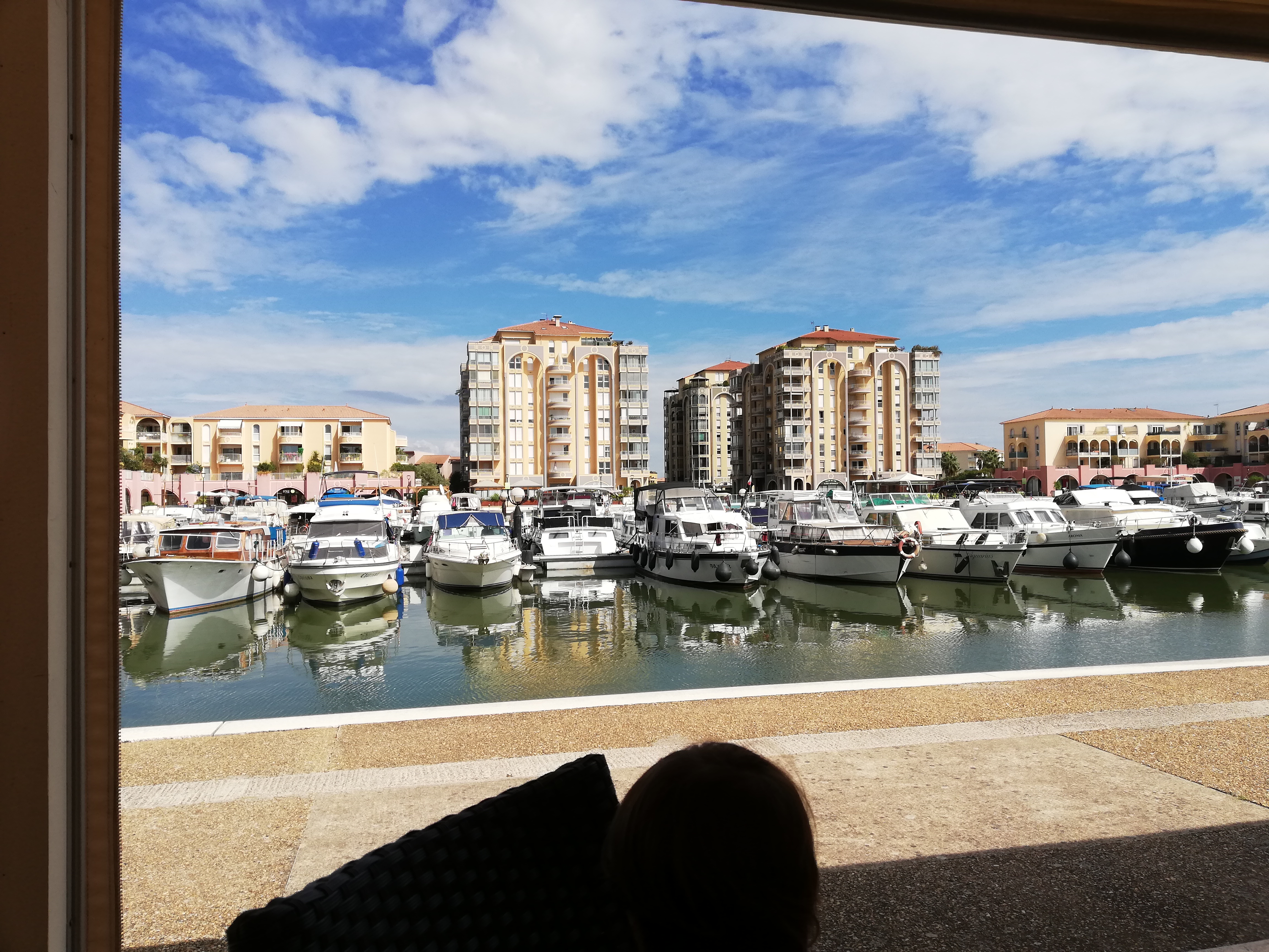 Nous avons passé un moment agréable sous la véranda au bord du port de Lattes et avons beaucoup apprécié les noix de St Jacques gratinées suivies du dos de cabillaud sur son lit d’aubergines grillées avec des tomates confites ; un régal pour les yeux et pour le palais.