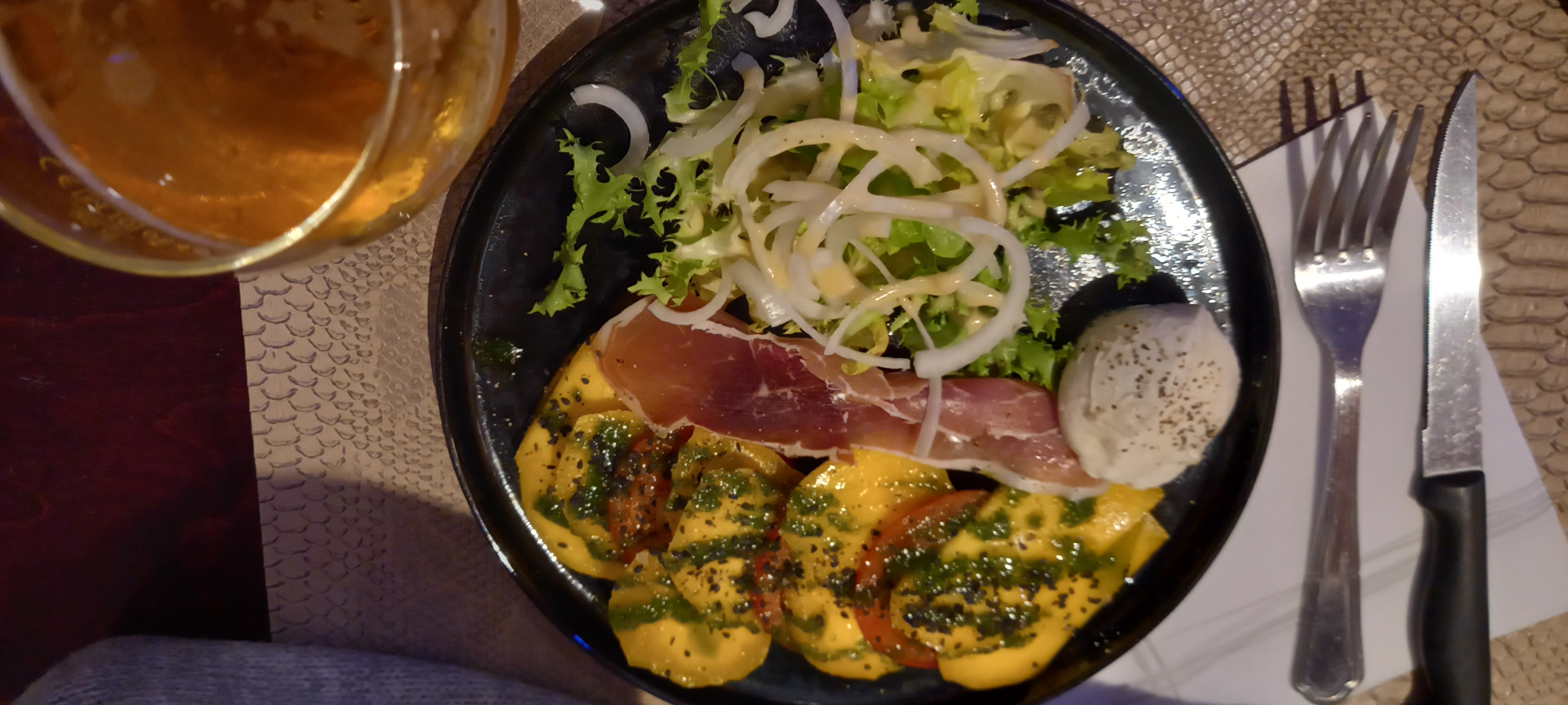 J'ai pris la côté de bœuf en plat , à 29 euros . Je l'ai demander saignante, elle est arrivée trop cuite , on me l'a refais gentiment sauf que cette fois , elle reviens bleu, pour l'accompagnement j'ai eu droit à une des frites surgelés, je m'attendais à ce qu'on me propose une sauce au poivre ou autres, mais on m'a plutôt donné du ketchup et de la mayonnaise. Conclusion : pour une assiette à 29 euros , on ne peux pas dire autre chose que le rapport qualité-prix est médiocre.