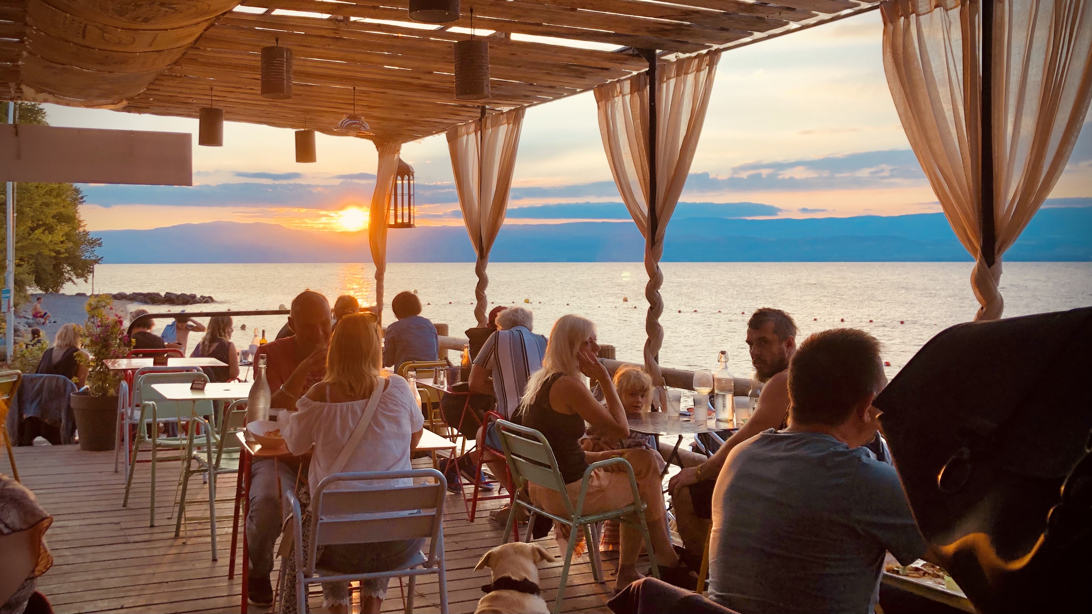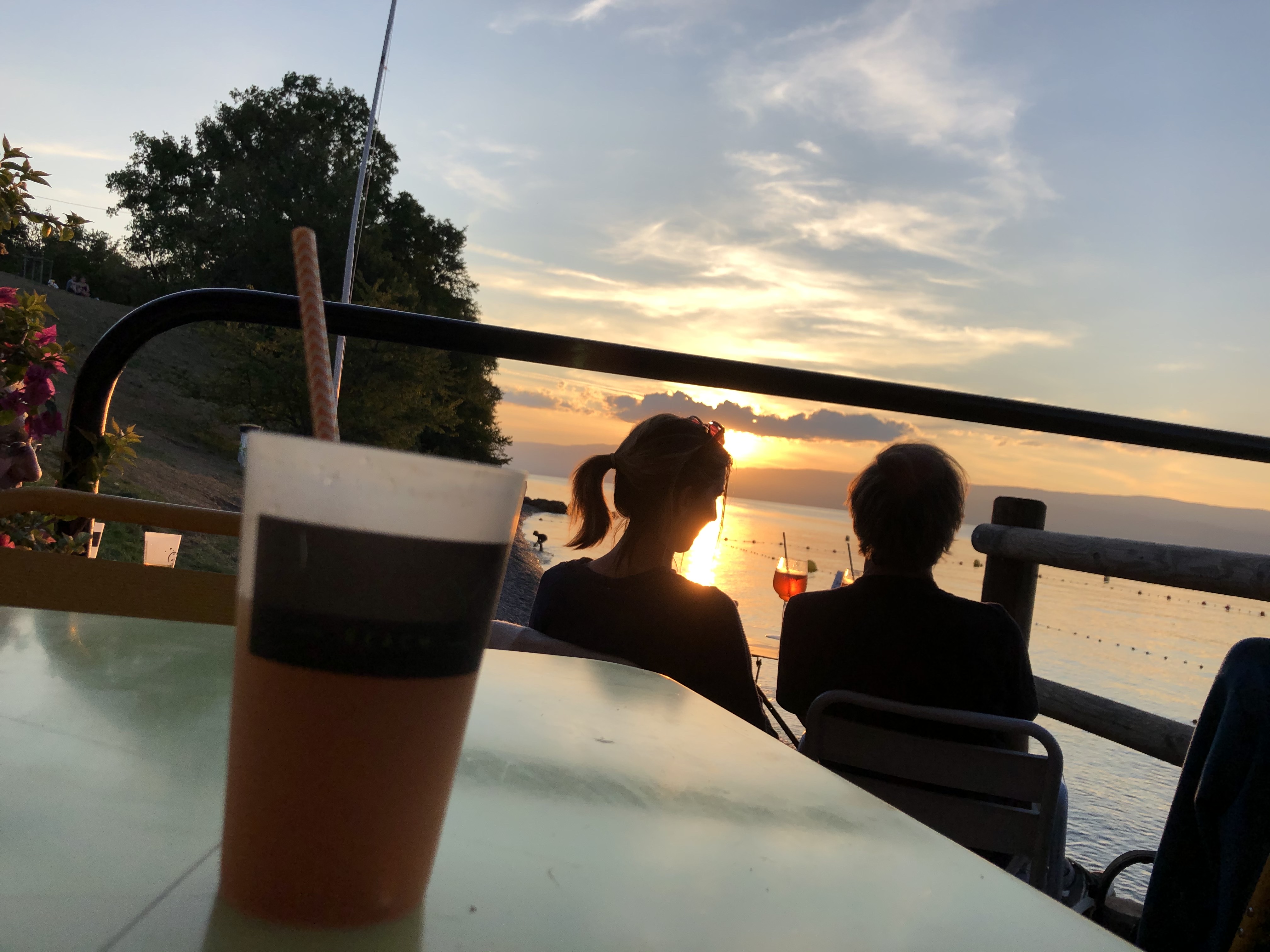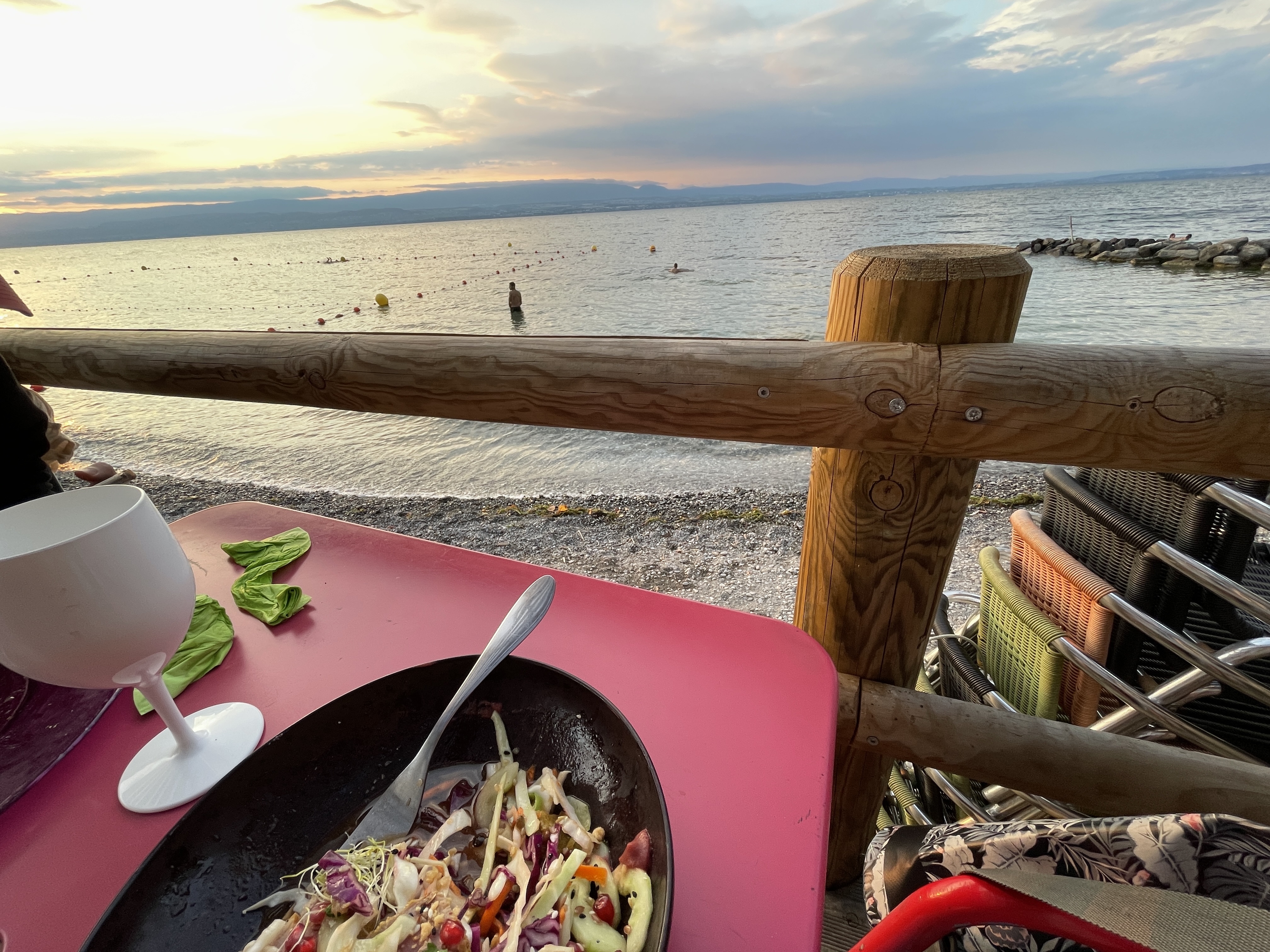 Ambiance plage avec un magnifique coucher de soleil sur le lac Leman Sympathique mais tarifs élevés