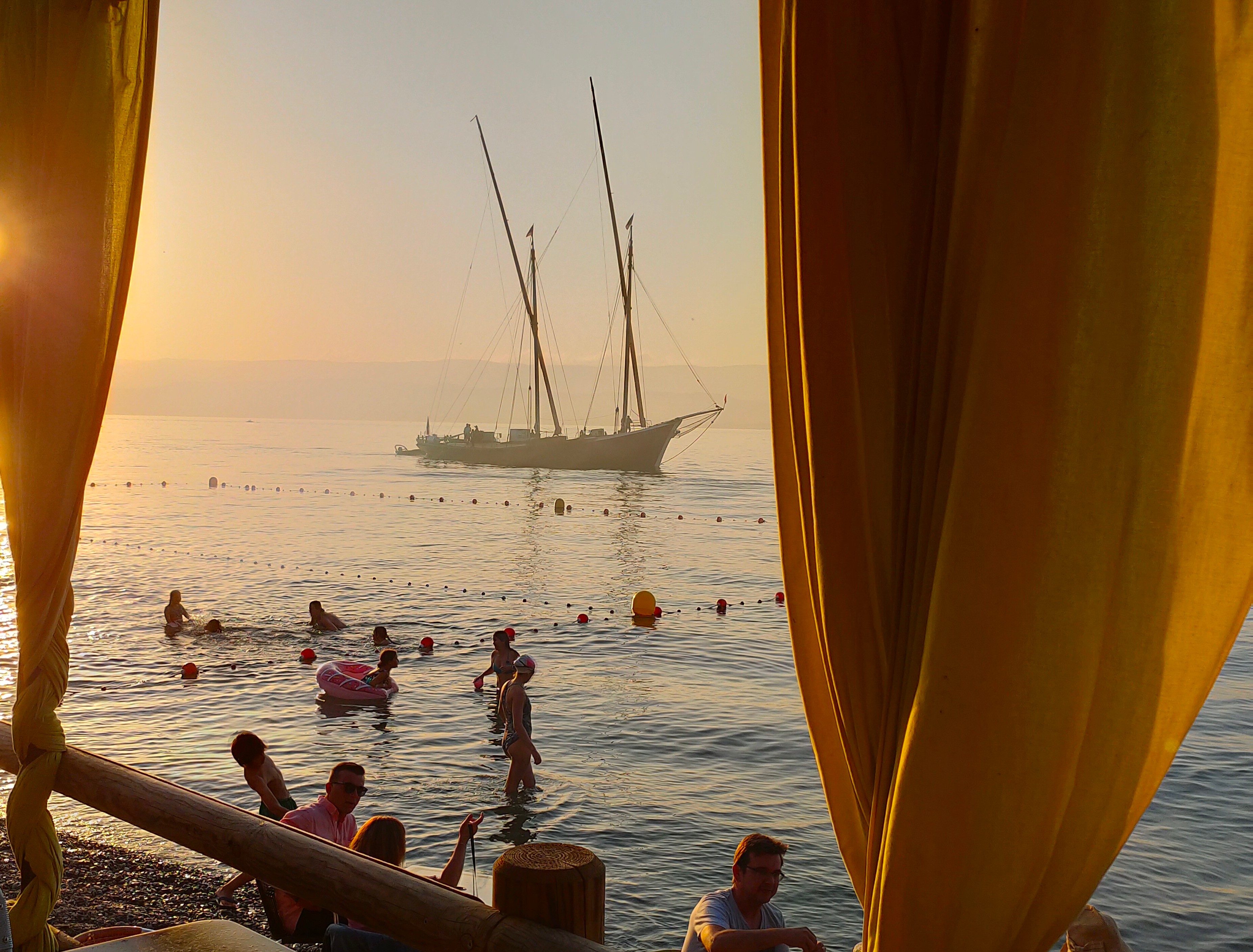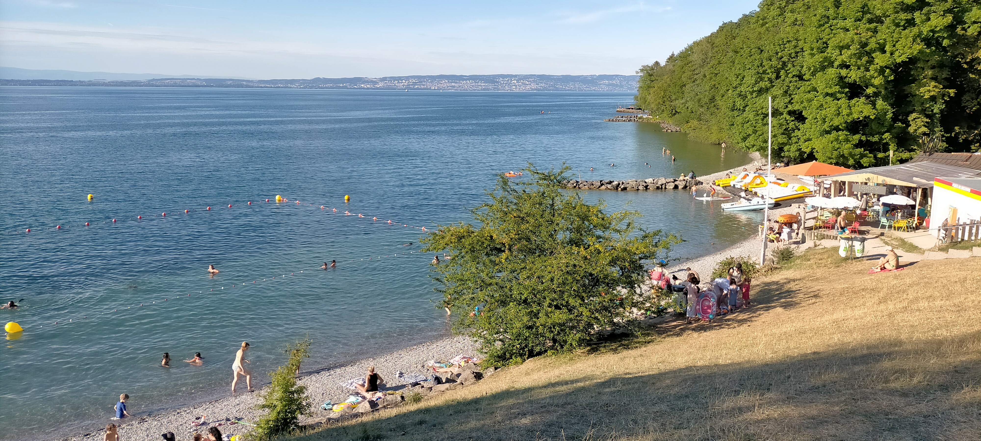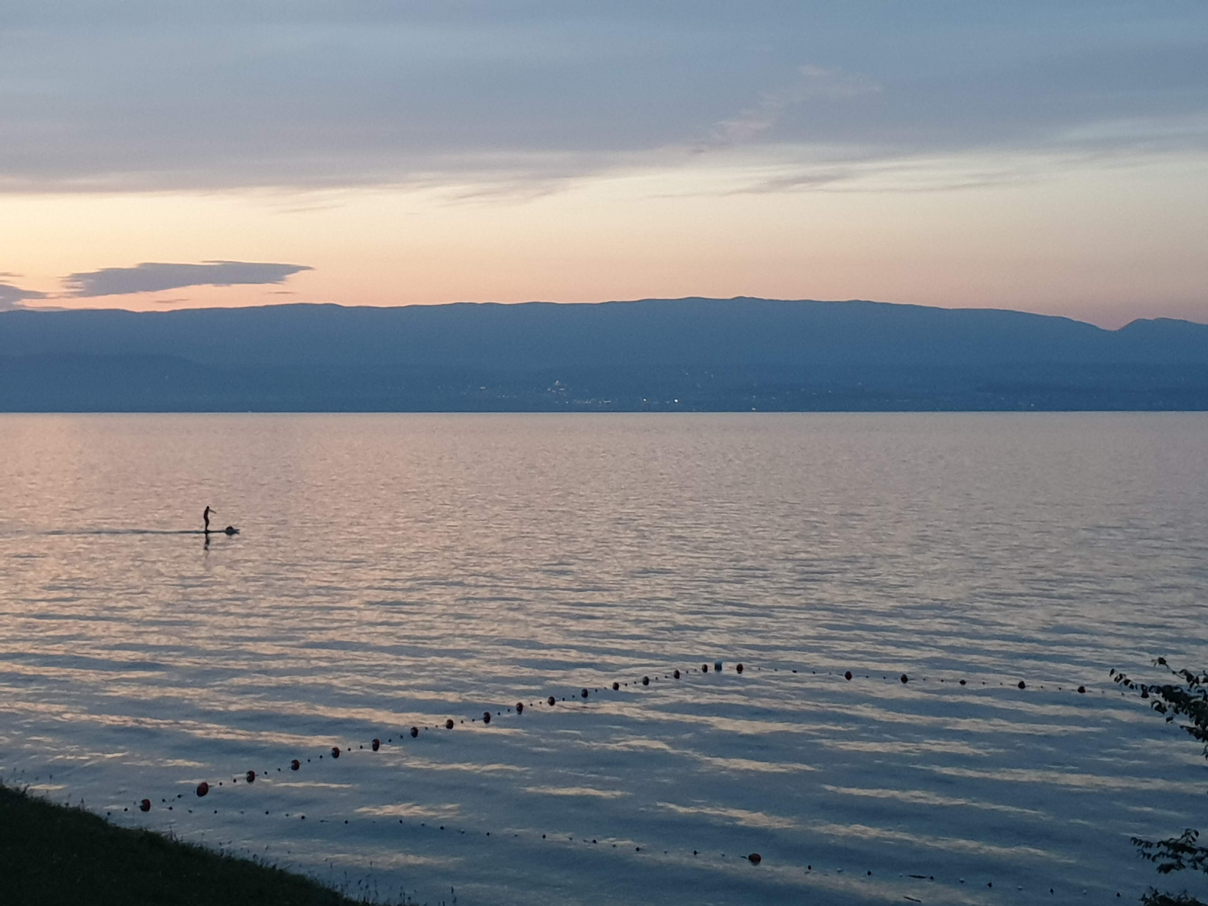 Ambiance plage avec un magnifique coucher de soleil sur le lac Leman Sympathique mais tarifs élevés