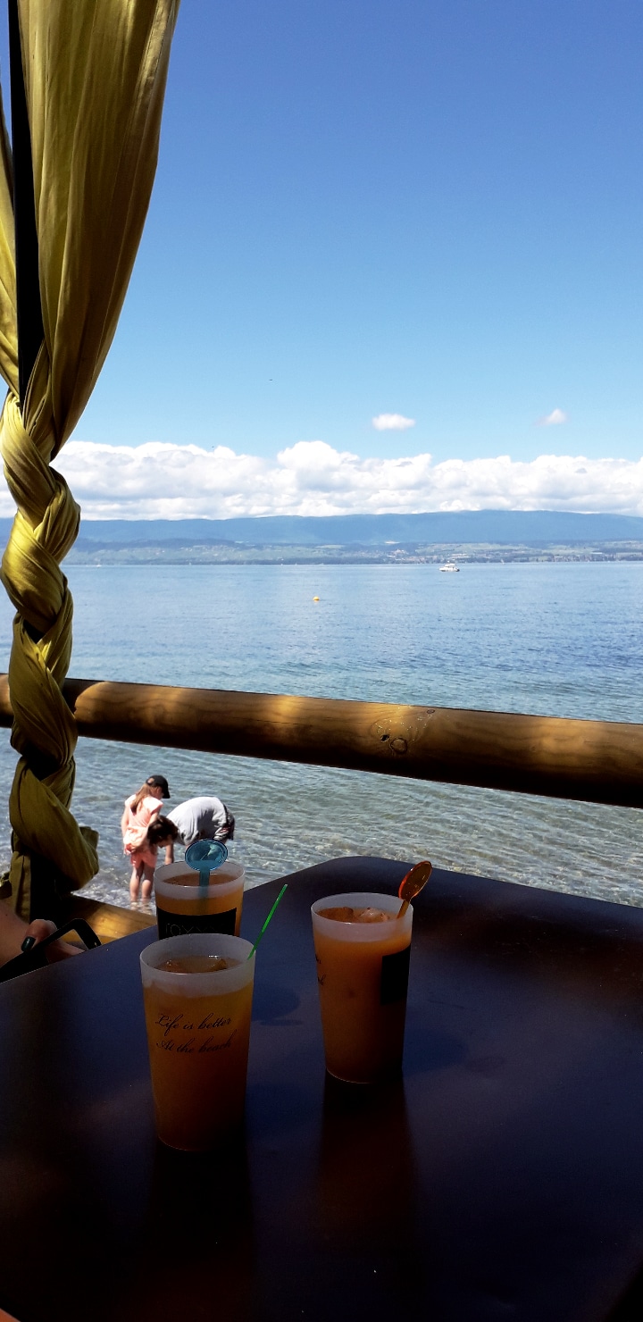 Restaurant bord du lac leman avec vue sur le lac. On y mange très bien