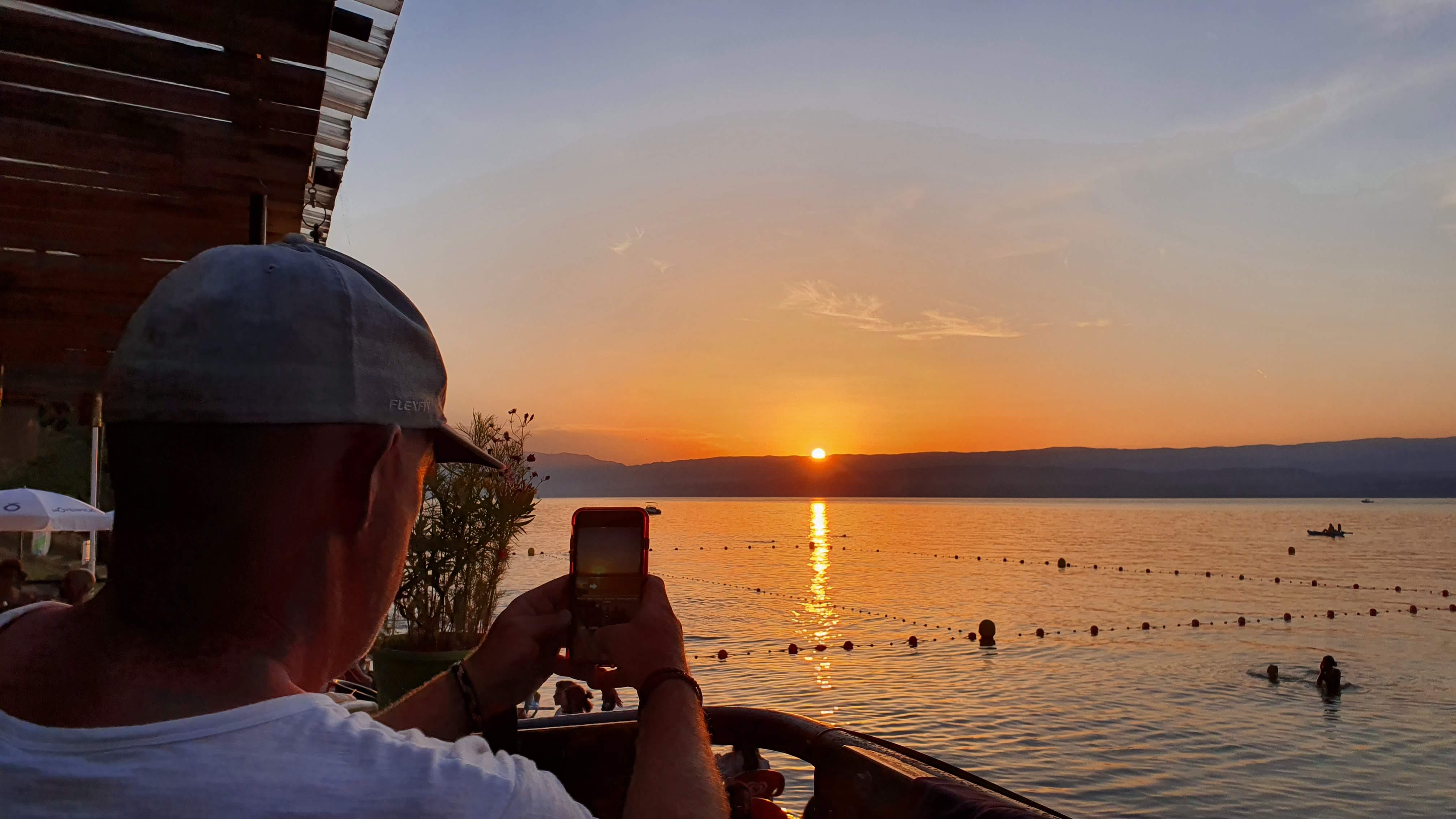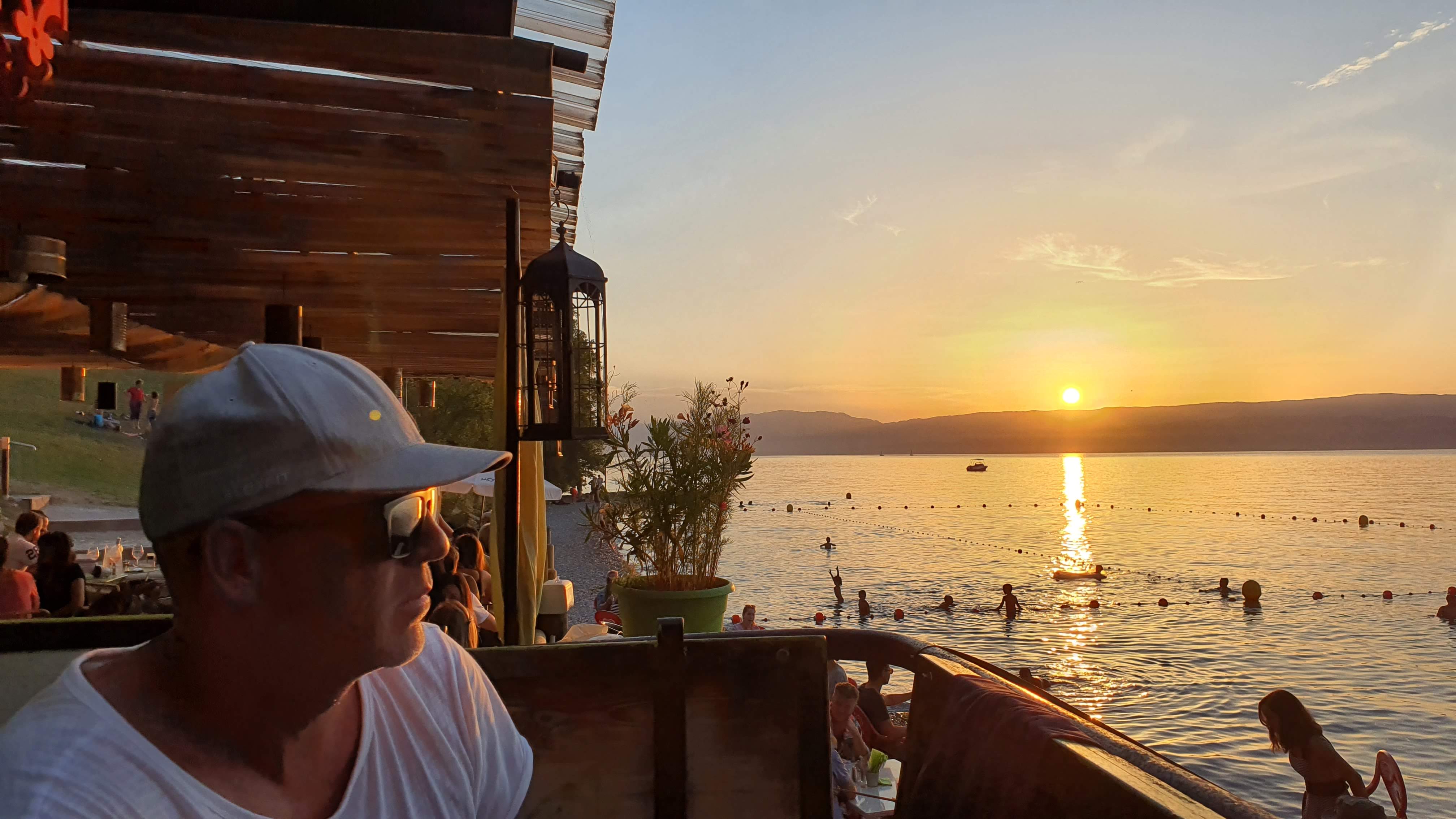 Malheureusement le serveur nous a pressé à vite commander alors que nous souhaitions boire un apéritif tranquillement avant de manger. Il était 19h et ils attendaient du monde. Le monde a commencé à arriver plus d’1h plus tard. Nous avions largement le temps de prendre l’apéritif et de manger tranquillement. Dommage. Surtout que le spot est pas mal pour voir le coucher de soleil sur le lac.
