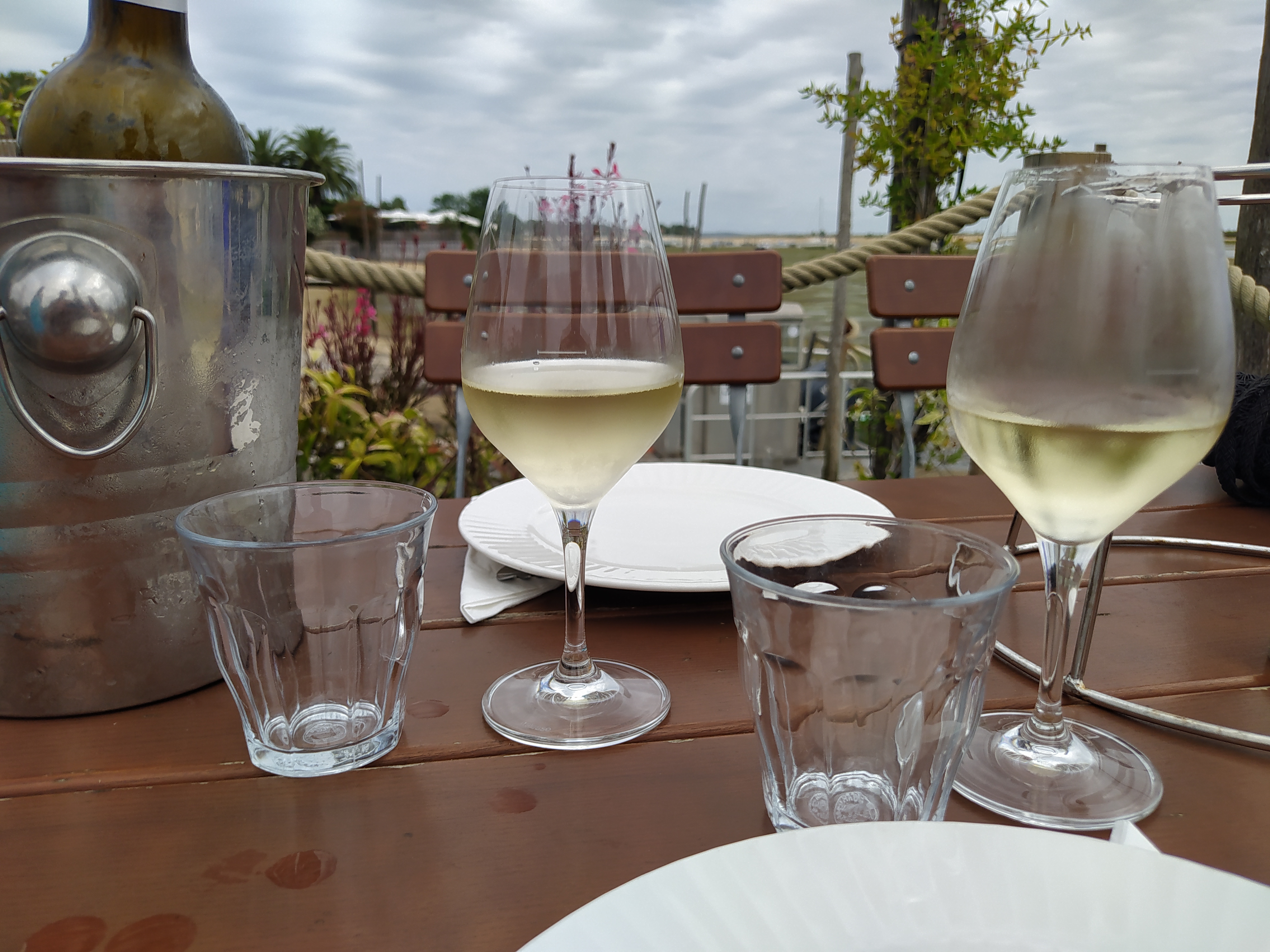 Toujours un plaisir de se poser face à la lagune devant un joli plateau et un petit verre de blanc