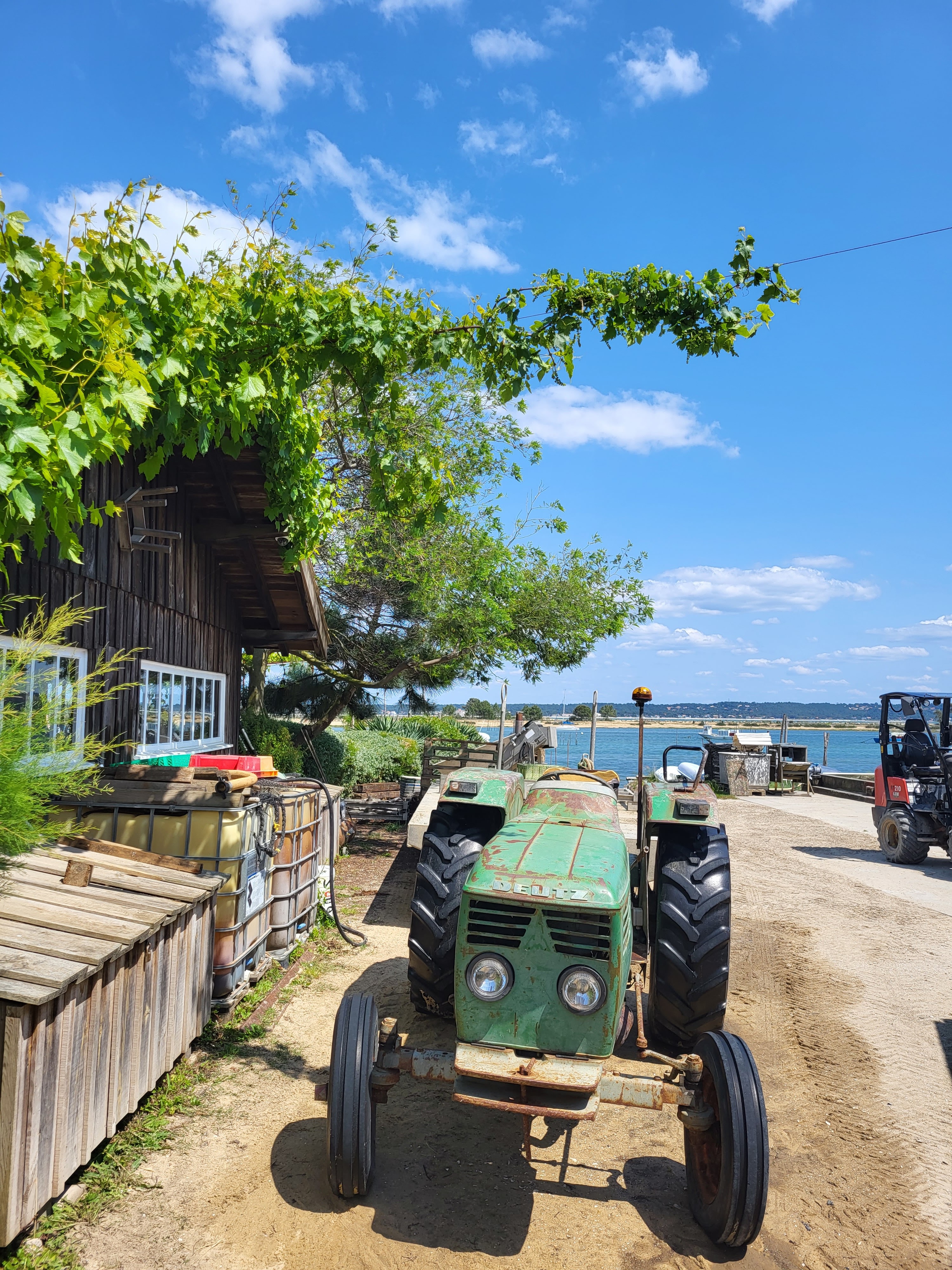 Dégustation pieds dans l'eau. Personnel sympathique. Notre étape dégustation au Cap Ferret
