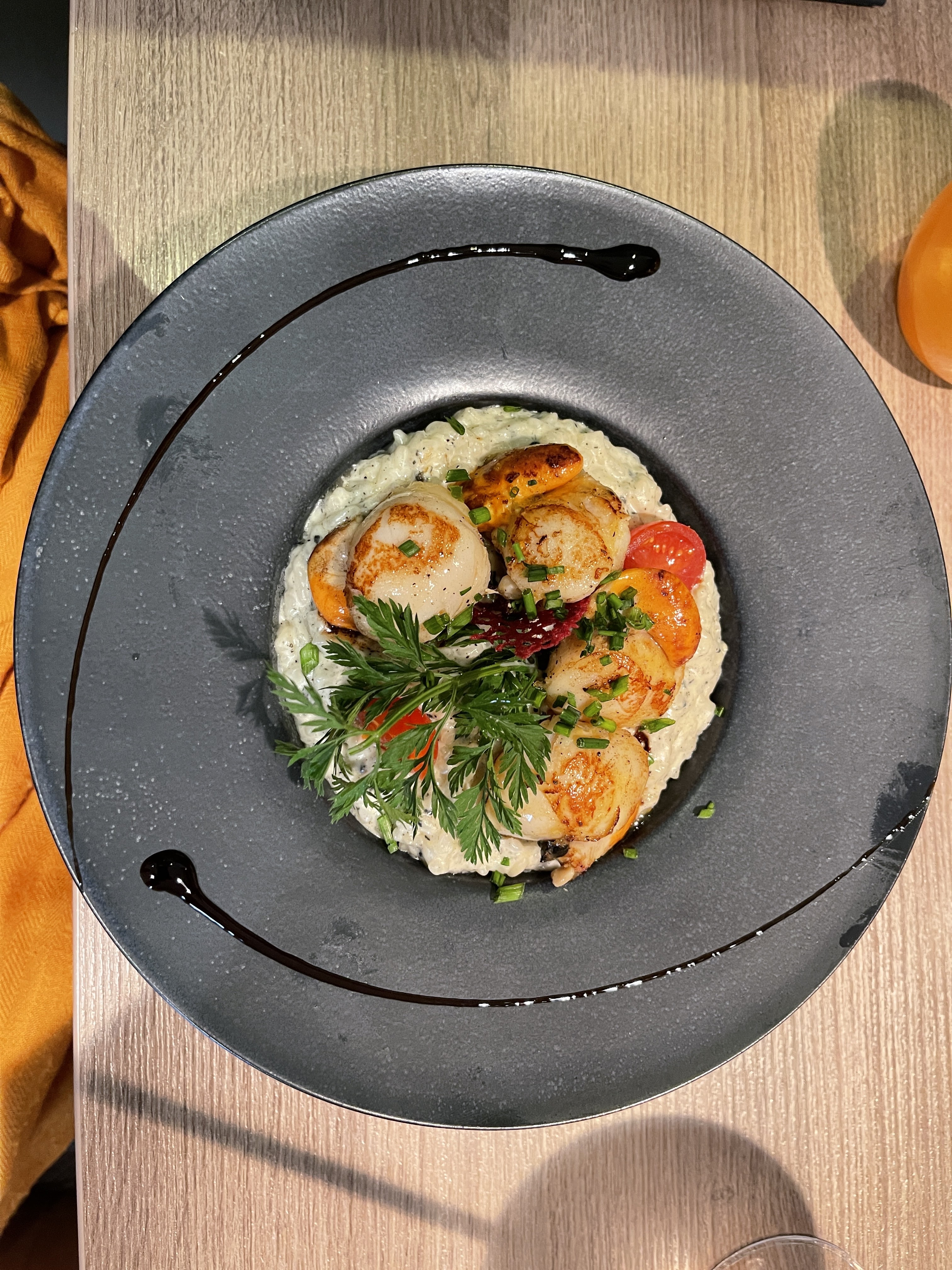Très bonne adresse sur Valenciennes. Cadre agréable et dans la tendance, on s y sent bien. Le personnel est agréable. Petit bémol sur l escalier en verre qui couine un peu lorsque le personnel monte pour servir l étage. Mention spéciale au risotto aux saint jacques et aux truffes. Excellent. Je recommande.