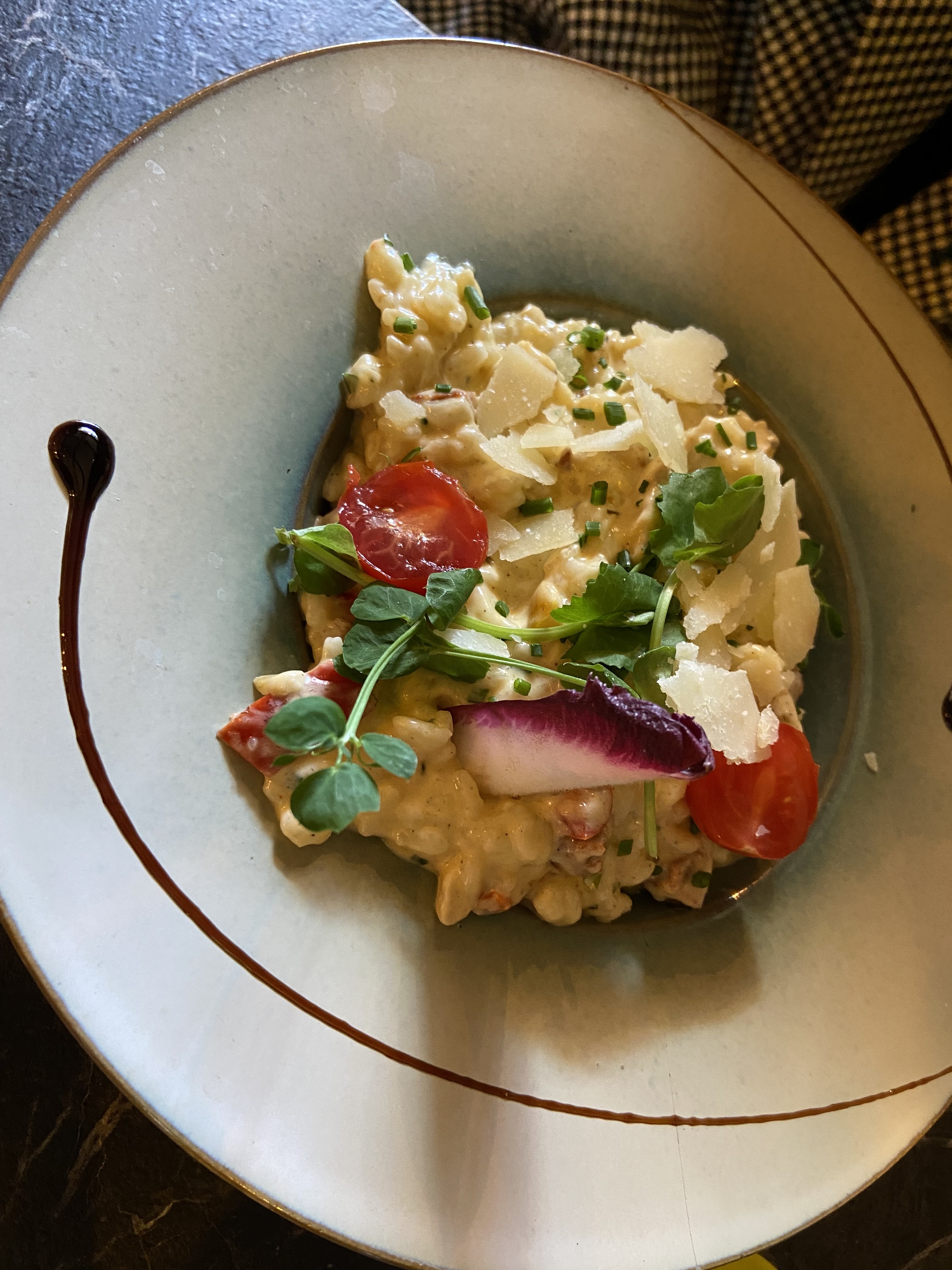Une cuisine raffinée et délicieuse, un cadre chaleureux et convivial, et une équipe très sympathique ! Nous y avons passé une excellente soirée 😊. À renouveler 🤗! La photo est le risotto veggie, un régal 😋!