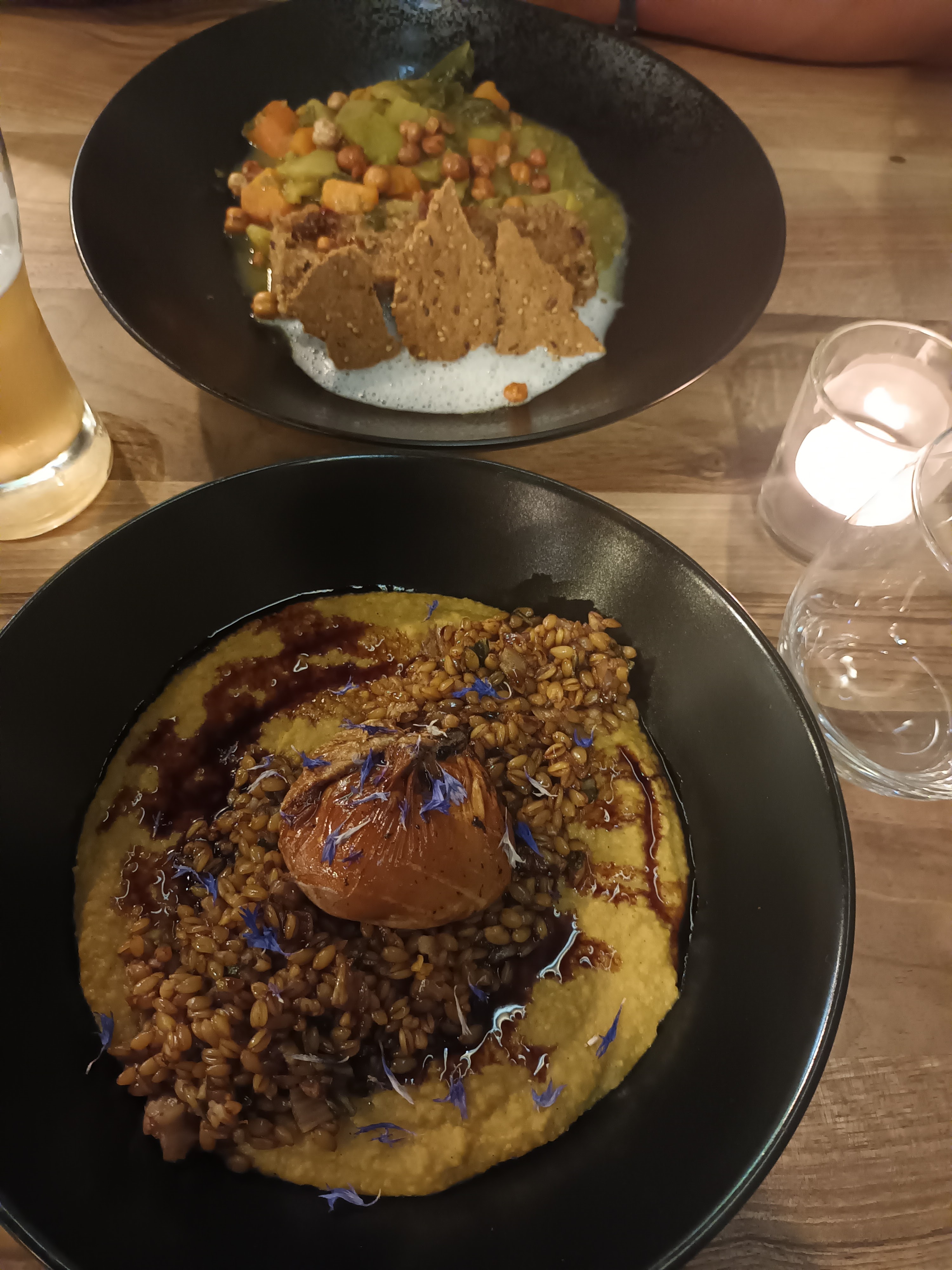 Je dois préciser que je ne suis pas végétarien et jusqu'à présent, aucun restaurant de ce type n'a réussi à me convaincre. Le concept de cuisine éthique et locale nous avait déjà séduit, ma femme et moi, c'est pourquoi nous avons choisi le restaurant. Au final, nous y sommes allés deux fois en trois jours car non seulement le concept, mais aussi TOUTE la nourriture et l'hôte étaient un vrai bonheur. Un jeu incroyablement génial avec différentes saveurs et textures, incroyablement créatif et présenté de manière pittoresque. Une cuisine ouverte avec une équipe sympathique permet de participer à la création. Les boissons complètent une belle offre et le couronnement est un chef si adorable et si convaincu de sa cuisine et de son concept qu'il faut simplement l'aimer. Le temps passe vite et on souhaiterait presque que la soirée ne se termine jamais. Un MUST absolu, pas seulement pour les végétariens !
