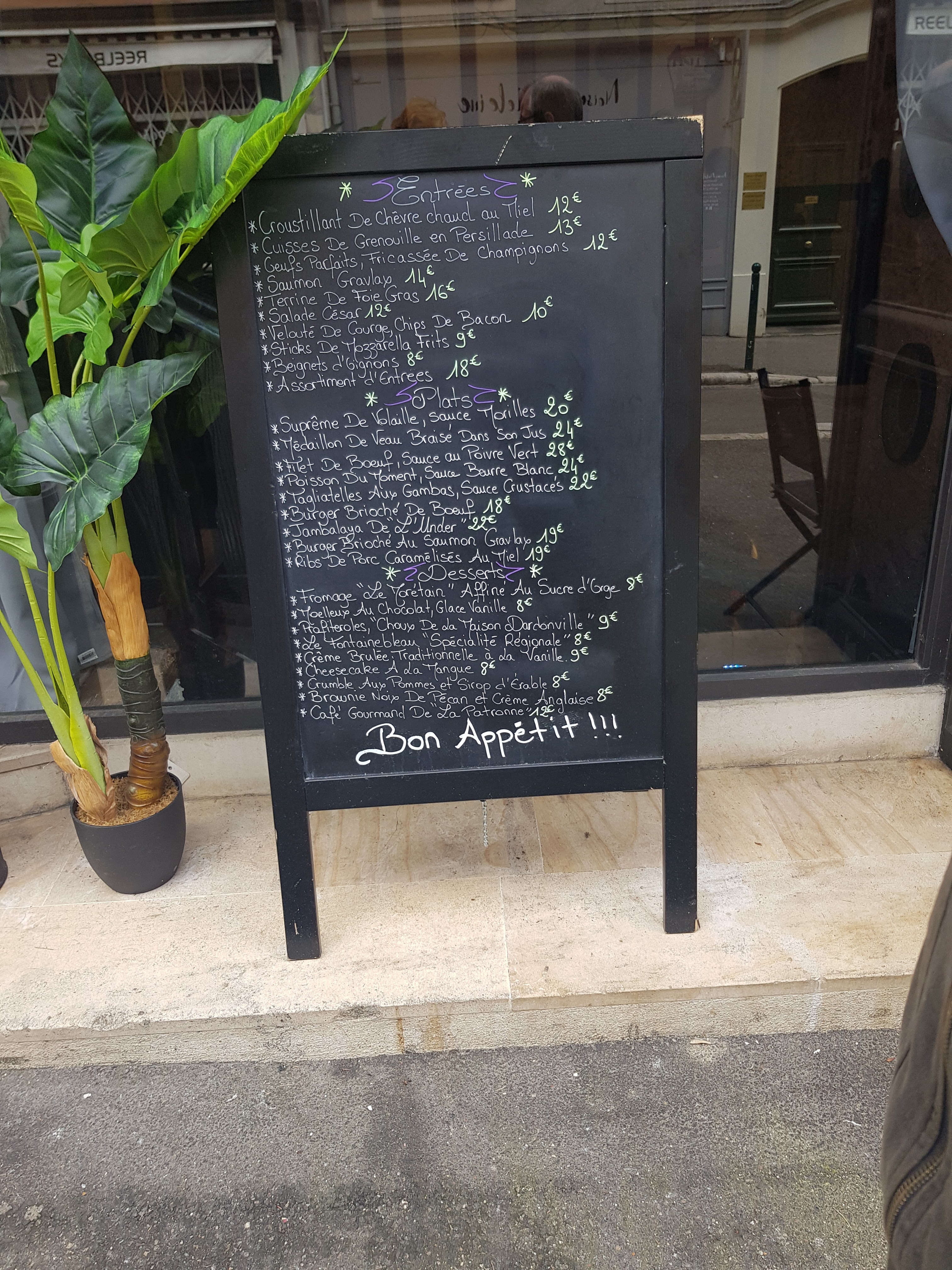 On y mange bien, le personnel est très sympathique, le lieu et la déco sont chouettes, bref une très bonne adresse à Fontainebleau, à l’écart des rues bruyantes et plus touristiques tout en étant au centre de la ville .