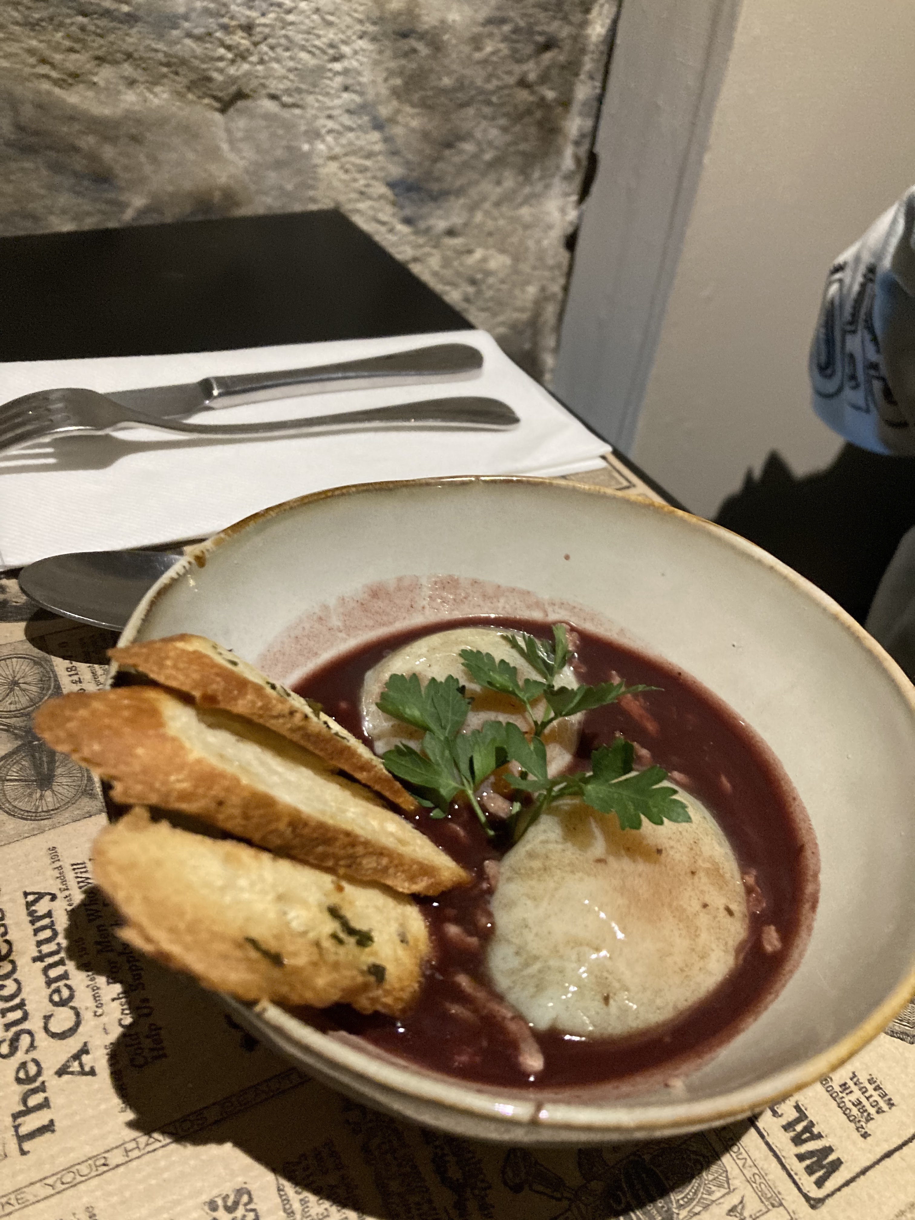 Ce restaurant a tout pour plaire : charme, ambiance, cuisine délicieuse et personnel charmant. La salle à manger de la cave est tout simplement magnifique et la nourriture est à tomber par terre. Le menu n'est ni trop complet ni compliqué et les repas sont superbes. La présentation est superbe et les portions sont de bonne taille sans être trop lourdes. Une fabuleuse carte des vins complète également le tout. Avant tout, c'est le propriétaire et le personnel qui font de cet endroit ce qu'il est. Ils sont chaleureux, amicaux et accueillants. Le prix est également très raisonnable. Donner à cet endroit moins de 5 étoiles serait lui rendre un mauvais service. Je recommande vivement de venir ici.