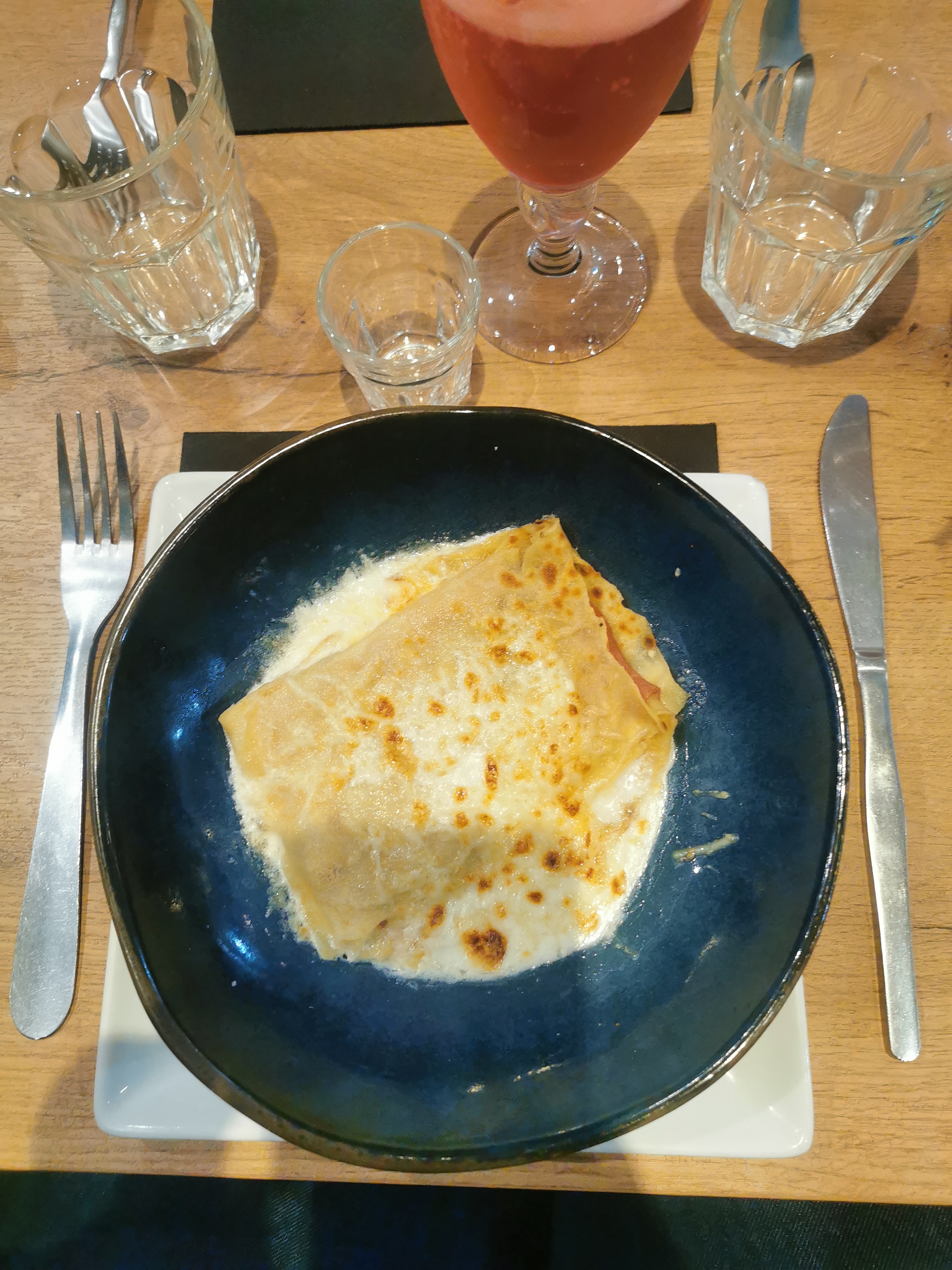 Accueil sympa, prix correct mais voilà pour nous, 1 glace 1 cheveux, 3 crêpes réchauffés et 1 fourchette sale. Dommage...3 étoiles c'est correct aussi.