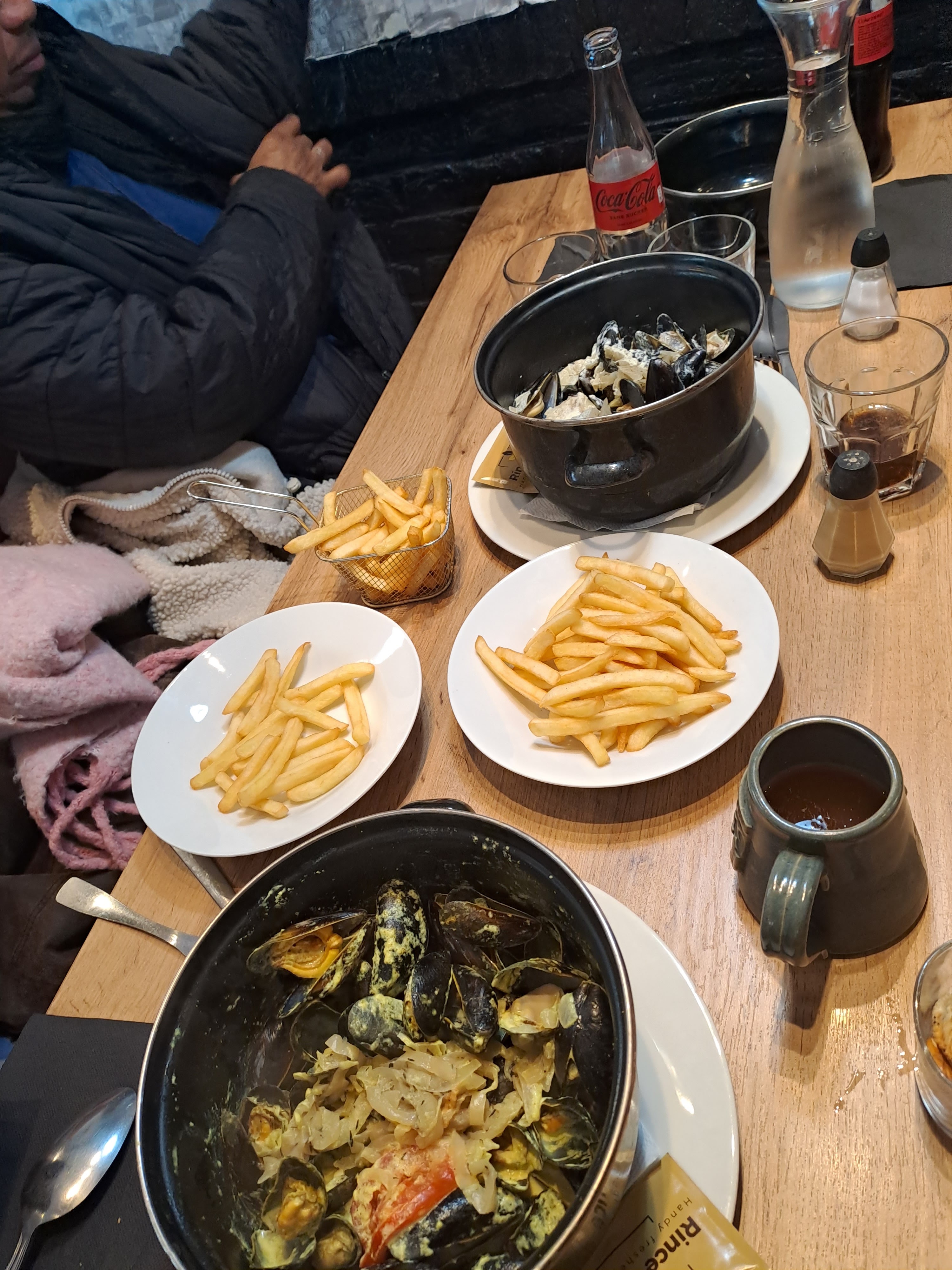 Supplément frites 3€. Frites surgelées. Moules passables. Très déçus mais serveuse sympa
