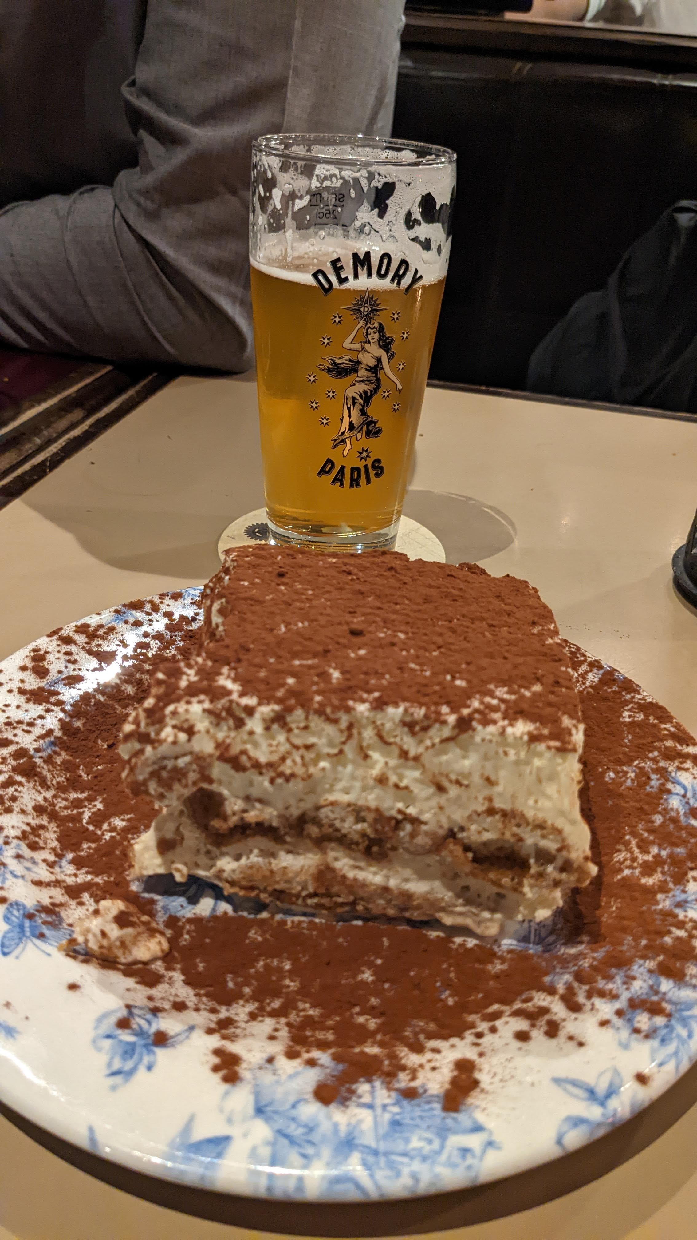 Pour moins de 40 euros, une pièce d’agneau délicieuse, sans oublier les légumes (haricots) cuits avec soin, salade. Une bière pression. Un goûteux dessert : la succulente tarte aux pommes vanille et deux cafés ! Et un service sympathique. Le tout en terrasse, à l’abri de la pluie dans un quartier rempli de nostalgie (pour moi) Tout est parfait ! La brasserie parisienne comme on l’aime 😎