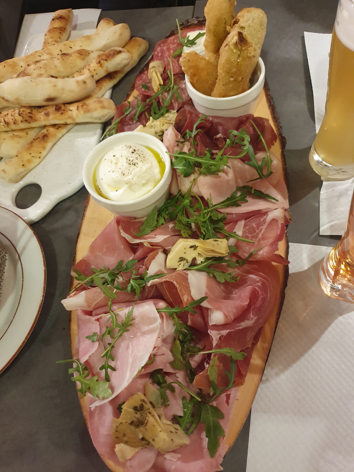 Le service était un peu moyen, il y avait beaucoup de monde alors les serveurs étaient en panique donc ça s’entend, mais ne pas servir le vin, ne pas servir les plats en même temps pour avoir des pizzas cramées.. cela dit il y avait une très bonne ambiance et les plats restaient copieux et bons