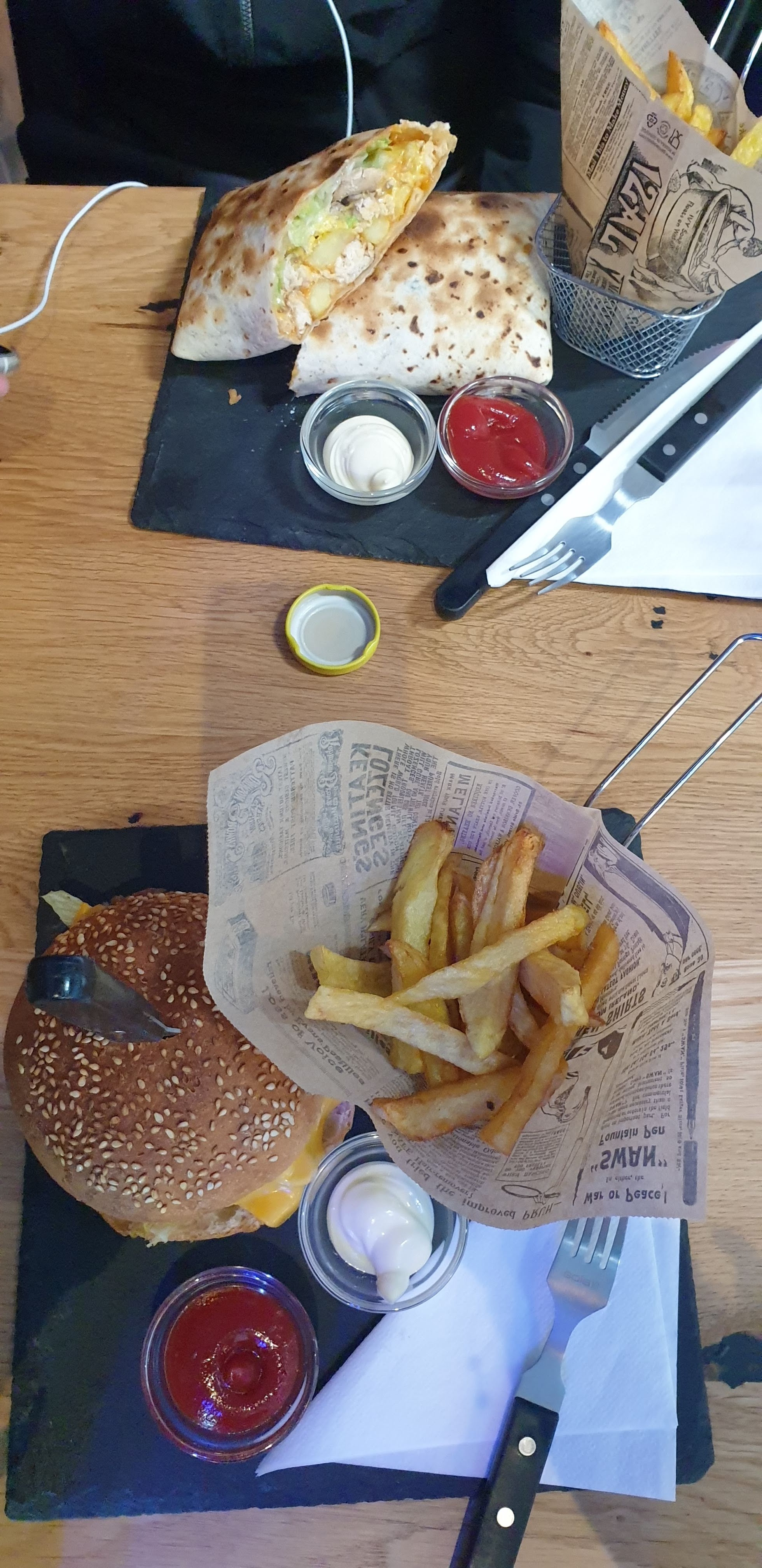 Restaurant très bien décorer super cadre ! Le personnel très agréable. Tacos très bon, frite inclus dans le tacos mais aussi une petite portion de frite servis à côté. Frite fait maison très bon ! Mon compagnon as prit un burger très bon aussi. Agréablement surprise par l'addition pour 3 repas on s'attendait à payer plus cher ! Nous recommandons