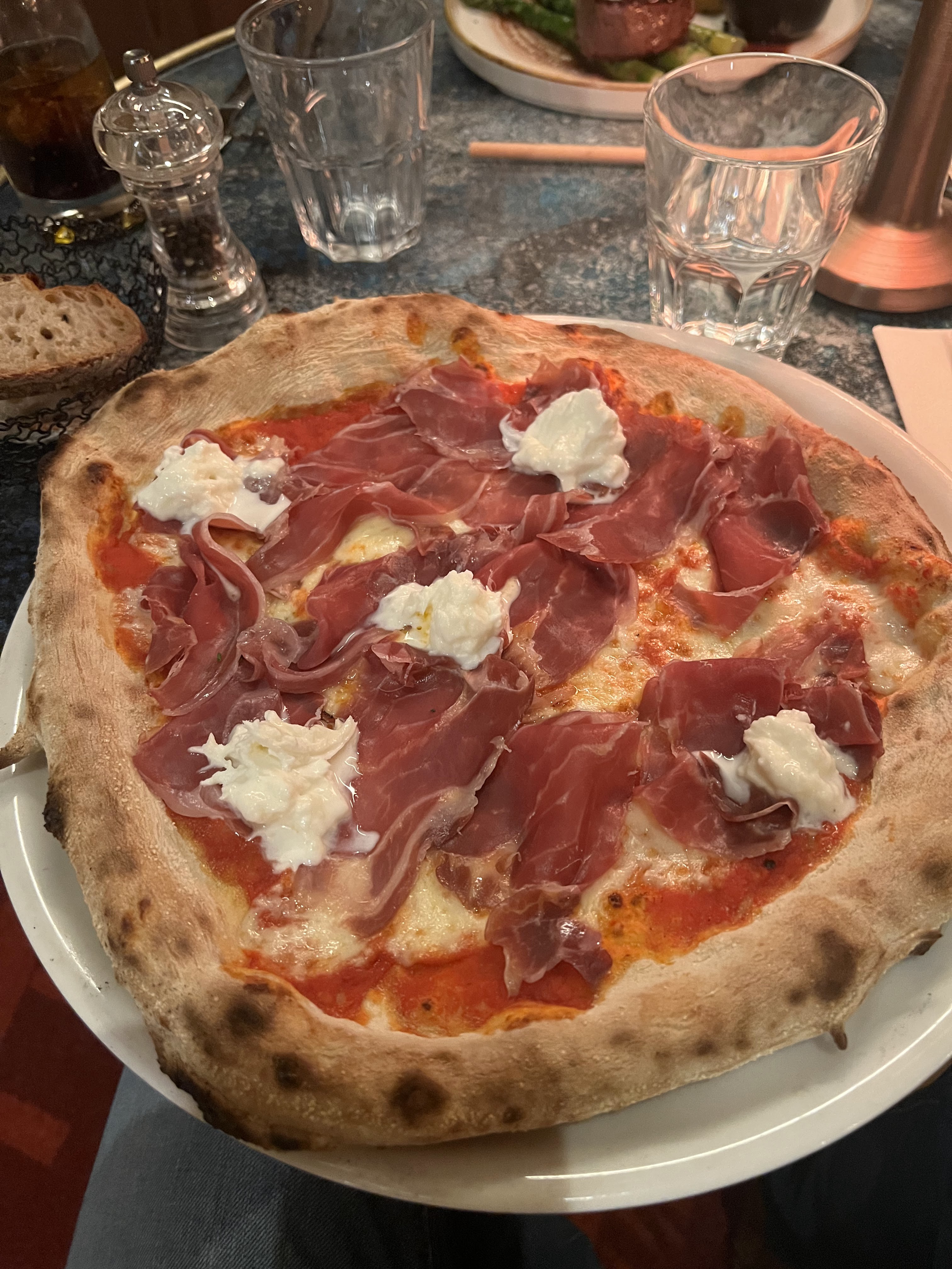 Pizza Parma 3 tranches de jambon fines comme du papier, les bourratas ne sont pas entière, j'avais que l'intérieur sur ma pizza mon amis que l'extérieur, les verres d'acools sont remplis de glace et de petit volume (pas précisé pour certains sur la carte)