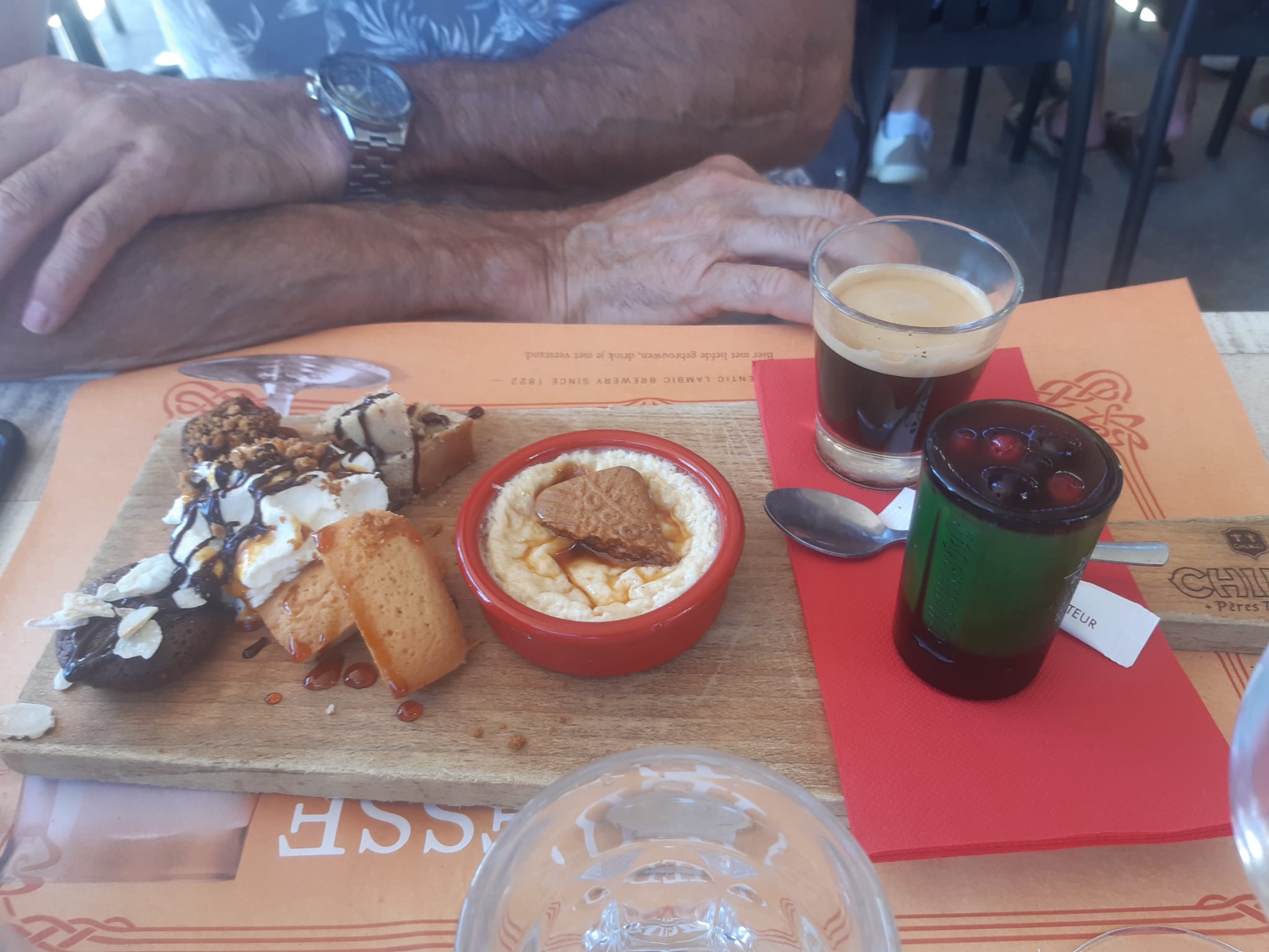 J'ai eu l'occasion de venir à plusieurs reprises pendant les vacances d'été. Habituellement j'opte pour un chocolat viennois juste EXELLENT, je ne suis pas une grande admiratrice de bières (diverses) mais j'ai été surprise de pouvoir goûter la Lindemans à la Framboise ! EXTRAORDINAIRE ! Ja valide à 100 %! Ni trop forte, ni trop sucré !