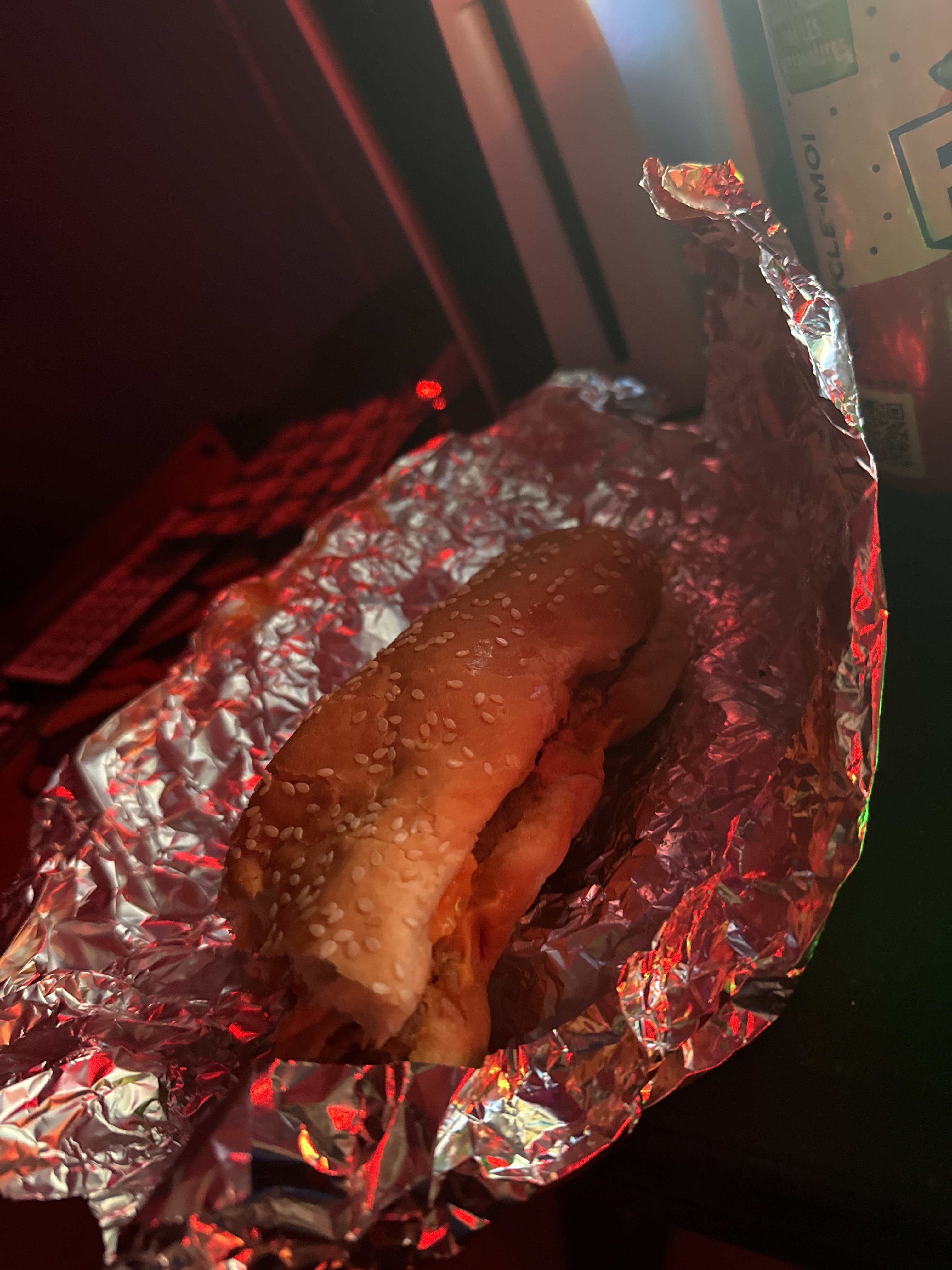 Pas très bon limite trop cuit pain burger sec puis la taille du truc même pas on en parle il faisait la moitié de celui sur la photo déçu 😞