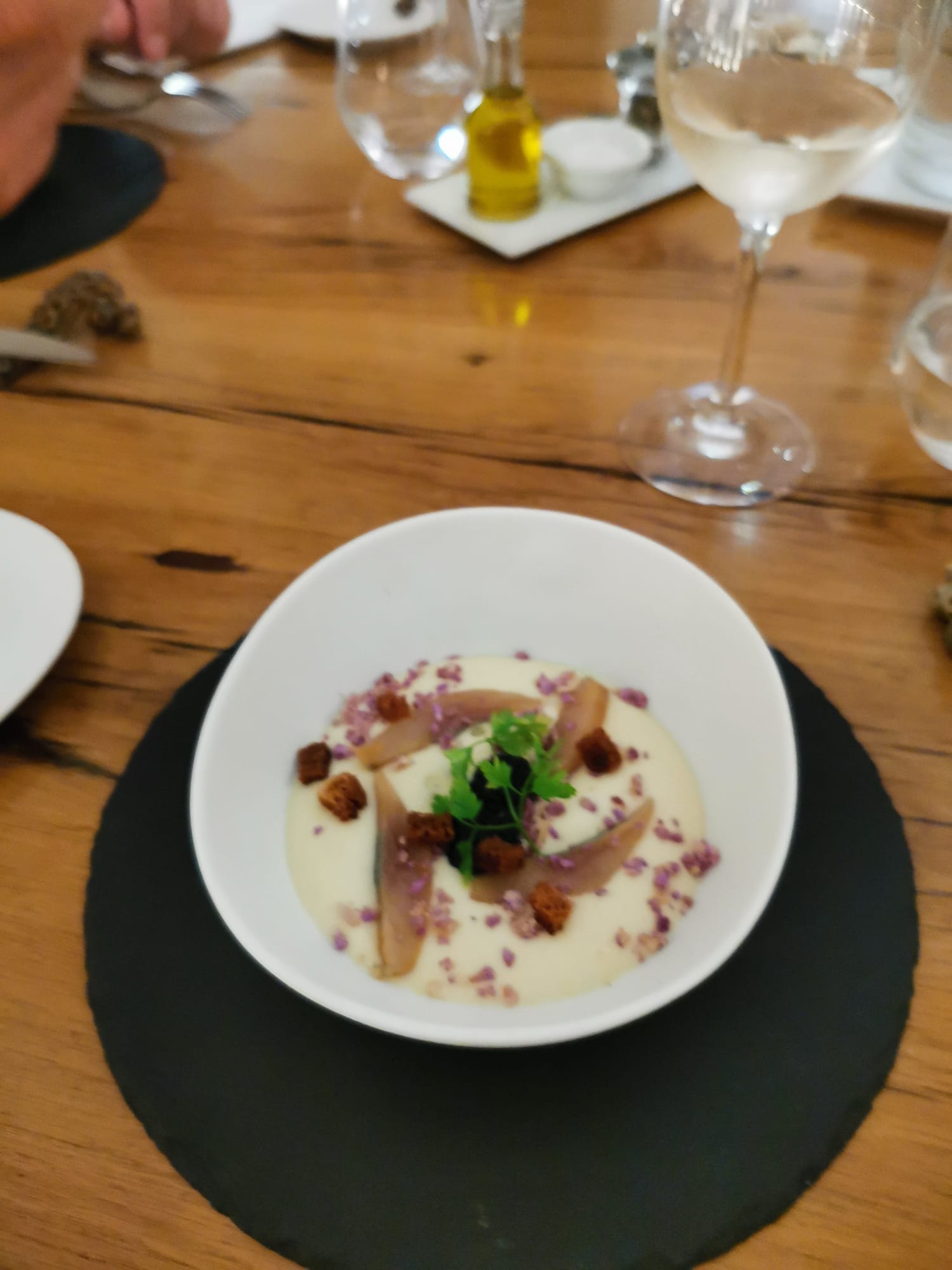 Un repas exceptionnel à tous points de vue. De l'amuse-gueule - une émulsion de pois avec des «chips» de hareng et des capsules de yuzu - aux plats de poulet et de veau, tous étaient parfaitement cuisinés et présentés. Le service était impeccable avec d'excellentes recommandations de vins pour accompagner nos repas. C'est sans aucun doute le meilleur restaurant de Sainte-Maxime.