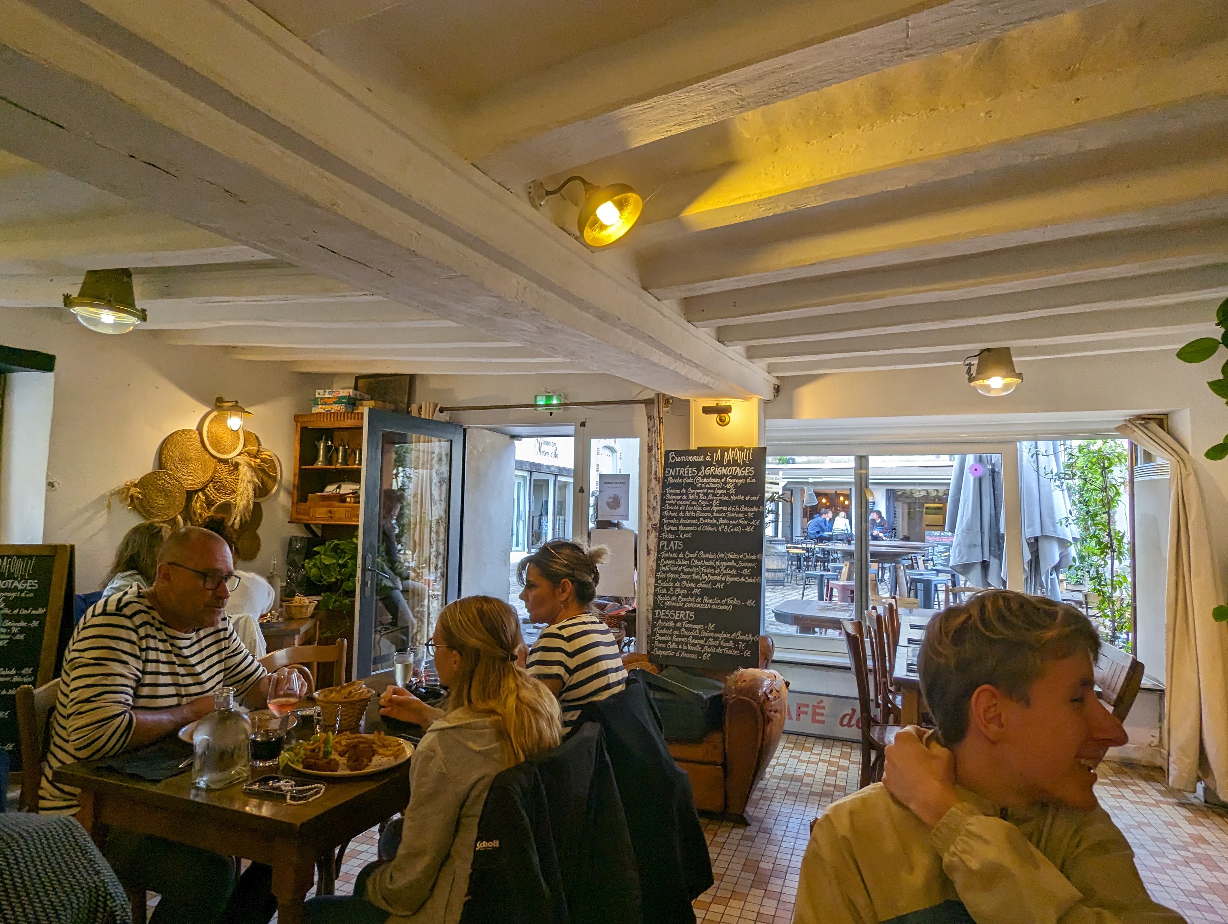 Dimanche midi nous avons eu la chance de pouvoir déjeuner. Oui il vaut mieux réserver la patronne à du refuser au moins une douzaine de couverts. Soupe de butternut, salade magret de canard sauce vinaigrette divive, blanquettes de veau, crèmes brûlées tout était parfait. Tout cela arrosé d'une cervoise (même deux 😉) d'une soupe angevine et de Saumur Champigny. Nous y retournerons c'est sur mais en réservant.