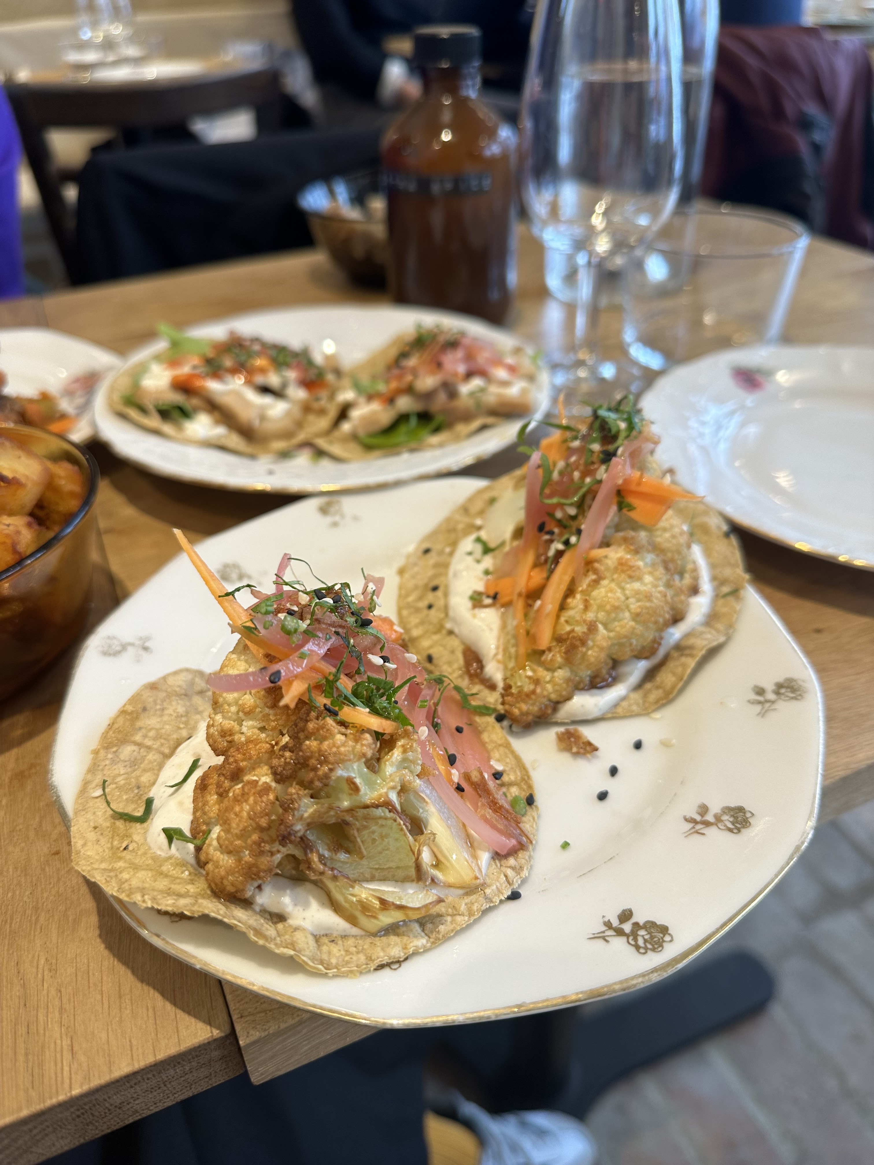 Magnifique expérience pour le lunch samedi dernier. La formule lunch est super intéressante : 2 assiettes pour 14 ou 3 pour 20. On devait être 3, on a fini à deux mais en commandant 9 assiettes 😂 et on a quand même quasi tout fini. A part 1 ou 2 fausses notes (un tacos poisson qui manquait d’une pointe d’acidité / assaisonnement) mais de manière générale vraiment super. Et le cadre super joli! Ils font des résidences de chefs mais toujours en respectant leur identité (inspiration mexicaine / tacos), je me réjouis donc de retourner au plus vite 😍