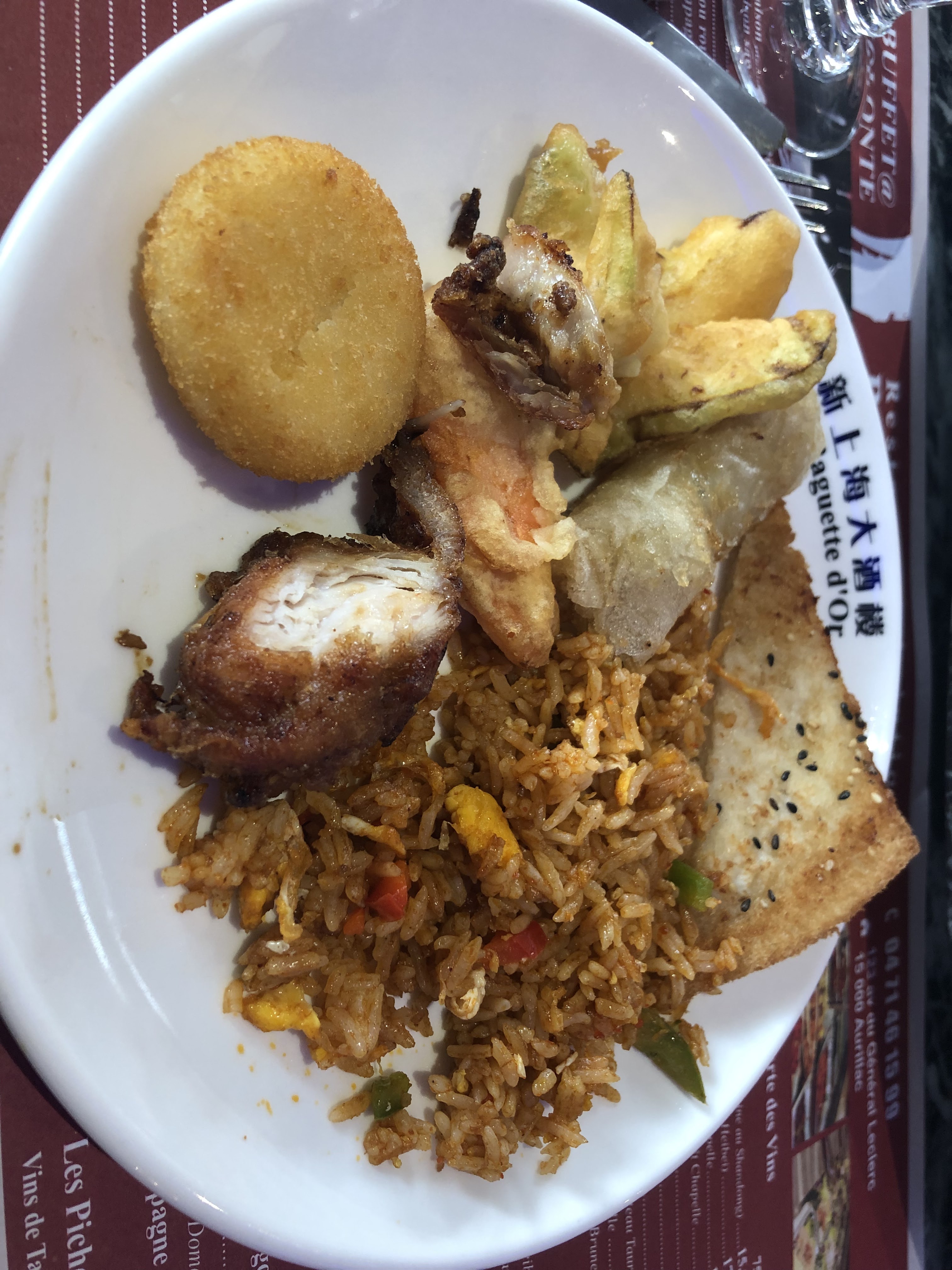 En fait il y a énormément de plats Français au buffet et on ne s en plaint pas car ils sont délicieux,friture,grenouilles,gambas,fruits de mer variés. La salle est immense et très confortable,les prix sont très doux et l ambiance est bonne