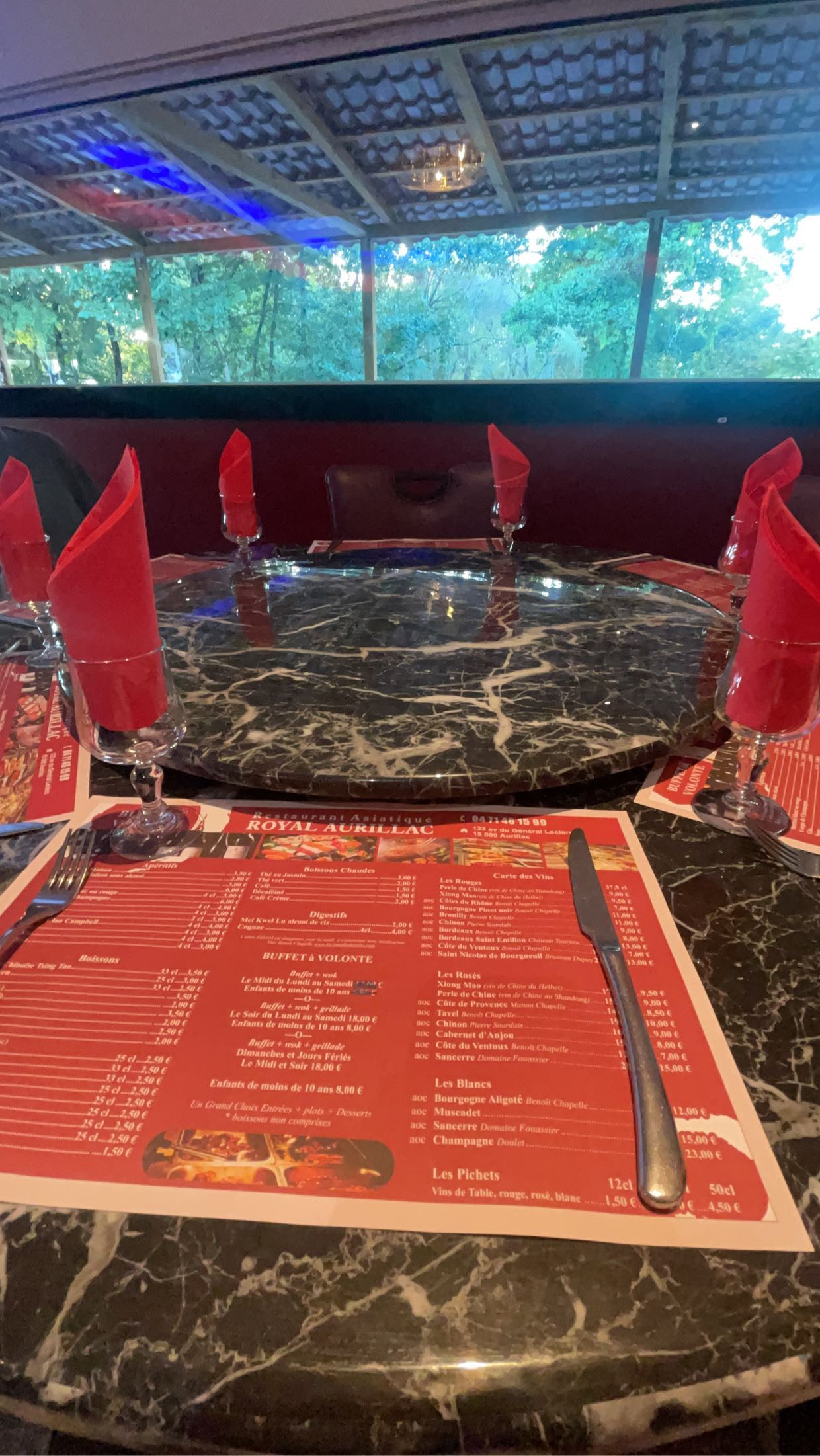 Très bonne surprise ! Nous avons l habitude d aller dans des buffets chinois un peu partout. De passage à Aurillac nous avions vu qu il y en avait 2.. celui ci donnait pas vraiment envie.. pas de photos sur Google ou pas claires (nous pensions que c'était seulement a emporter.) Donc notre choix s était porté sur l autre... Finalement nous nous sommes retrouvés juste a côté sans le vouloir. Pareil.. ça donnait tjrs pas envie.. devanture qui donnait l impression que c était pas ouvert voire même définitivement fermé (mais ça c est un peu une constante ds ce genre d enseigne, je sais pas vraiment pourquoi mais c est dommage et probablement n aide pas..) curieux nous décidons qd même d essayer de voir par les fenêtres opaques.. et la surprise ! Dedans c est tout autre chose. Déjà c est ouvert. Ça a l air Propre et beaux.. nous décidons finalement d aller là.. et nous regrettons pas.. contrairement à ce que j ai pu lire dans les avis il y a du choix (notamment sur la partie wok, d ailleurs il y a eu la queue tout du long!) La qualité est celle d un buffet chinois, on est pas sur de la gastronomie mais les fruits de mer étaient frais (ce qui n est malheureusement pas partout le cas...) Les plats étaient bons. En effet la partie dessert n est pas très achalandée mais de toute façon qui a encore faim au moment du dessert??. Je conclus sur la partie WC.. un sketch lol.. alors c est pas une question de propreté car on va dire ça allait et ça sentait même bon. Mais comme dis dans un autre avis.. a rafraîchir est le moins qu on puisse dire 😁. Pas de chasse ds les wc homme j ai bien essayé en soulevant le couvercle de tirer la chasse (car y a plus le bouton !!) En vain.. ensuite je vais pour me laver les mains lol le robinet qui bouge ds tous les sens.. quand même ça coûte pas grand chose une chasse et de resserrer les écrous de robinet... Et de suite ça change tout.. mais bon j' étais pas venu pour les WC...