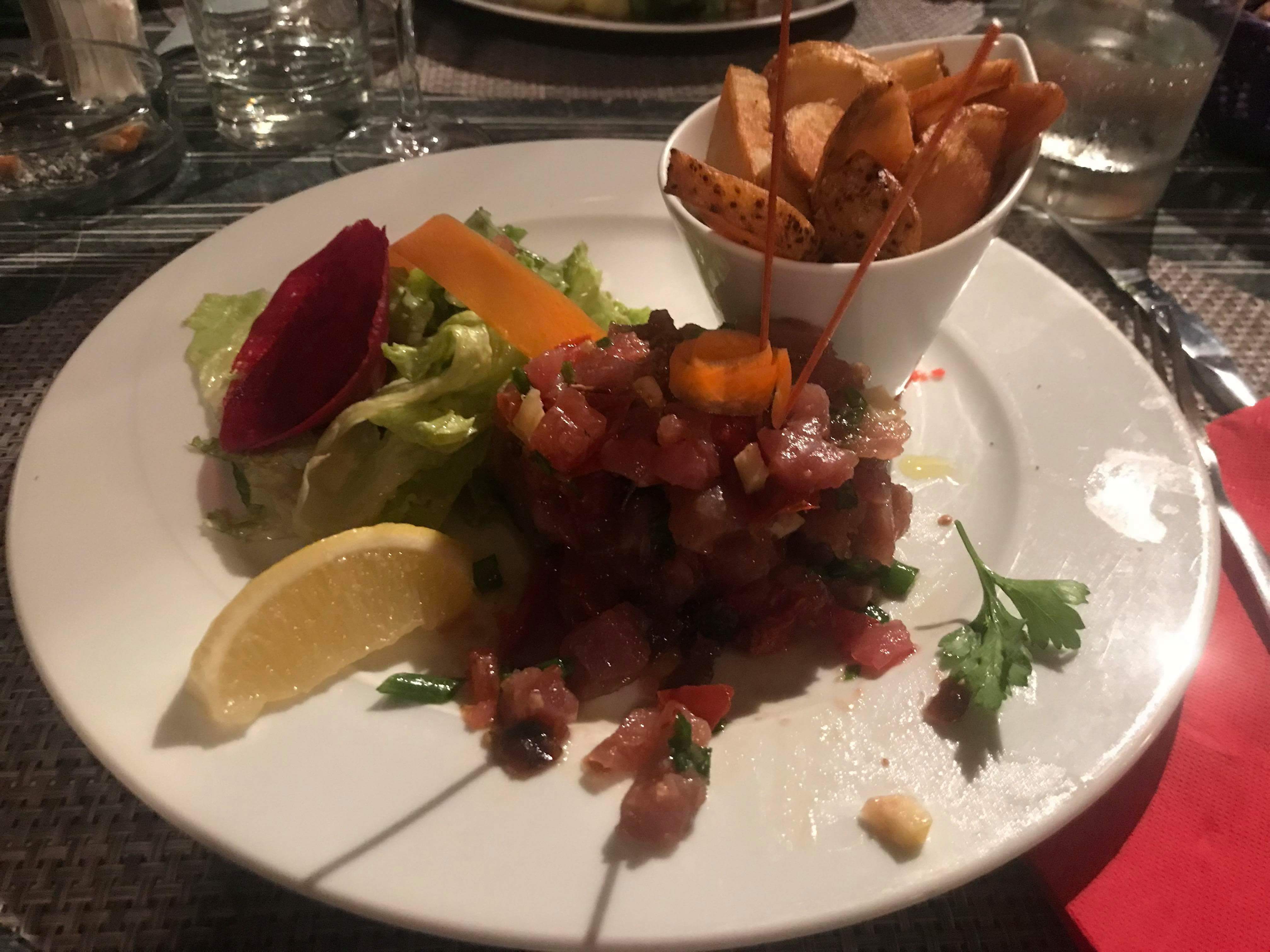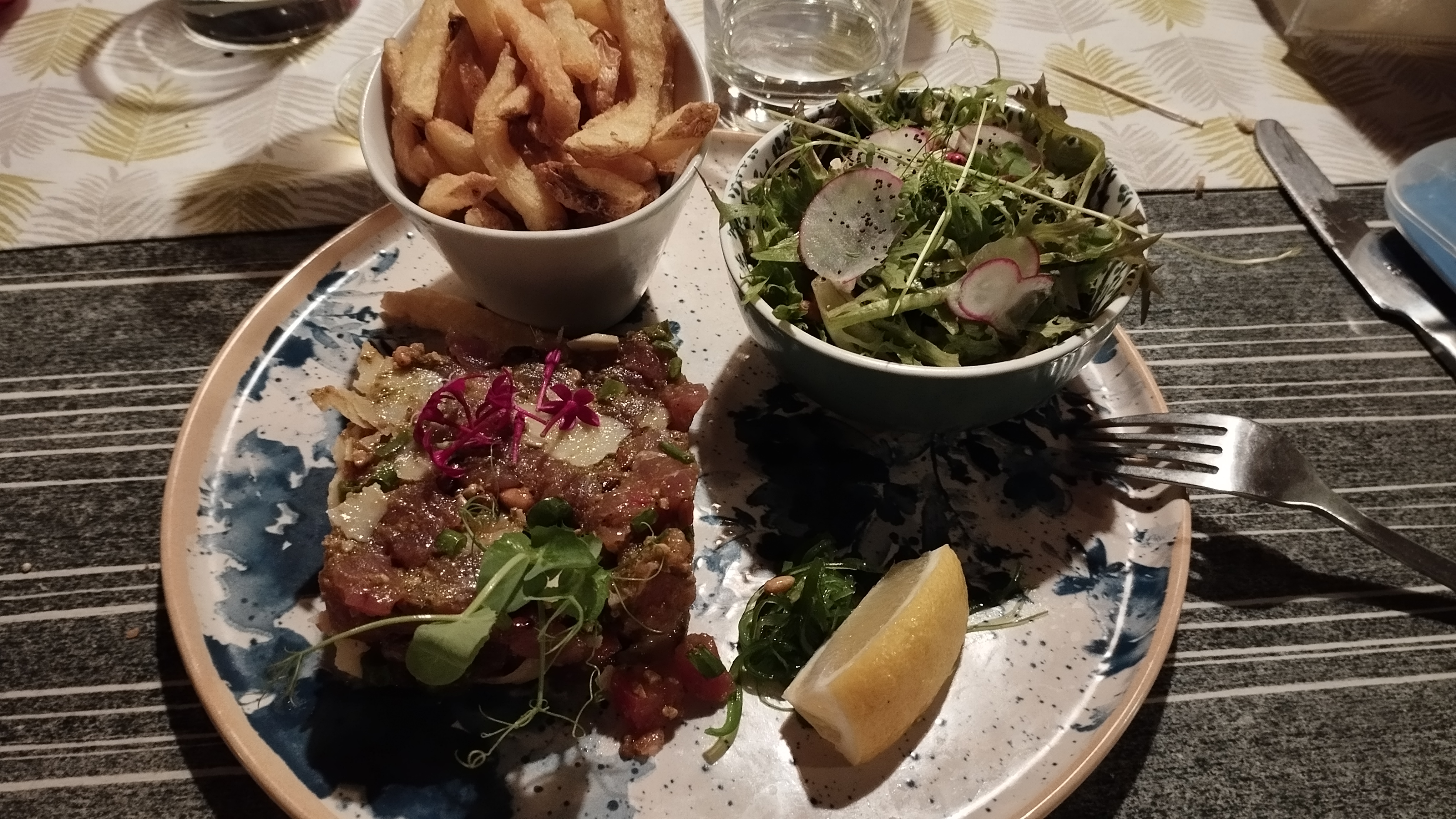 Ambiance sympa, bons tartares mais attention à l'addition! On s'est rendu compte trop tard mais ils nous ont fait payé 2 fois les boisssons. Dommage...